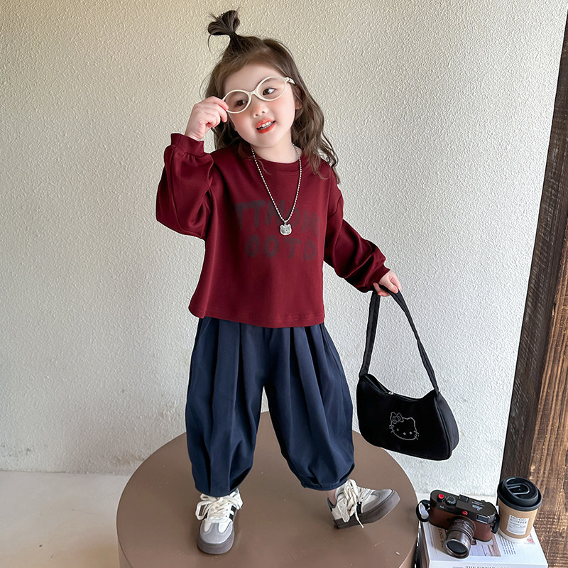 女童套装2026新款儿童春秋洋气时髦卫衣春装女宝宝春季衣服字母