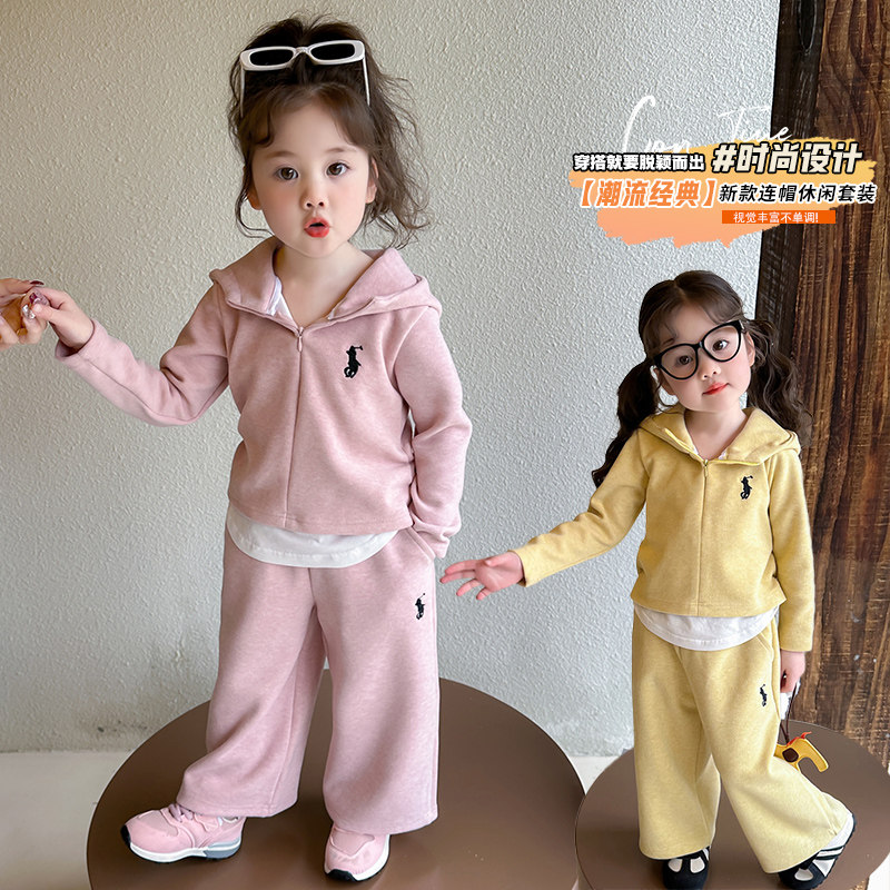 女童春秋套装2026新款洋气时髦儿童绣花女宝宝春季早春装运动卫衣