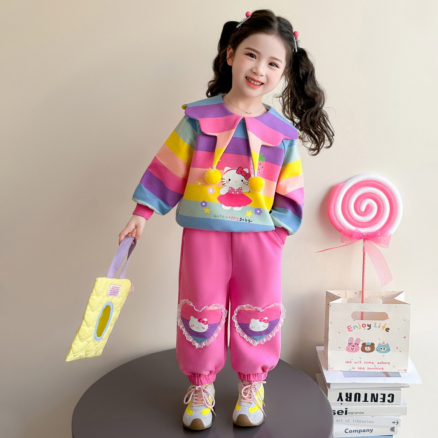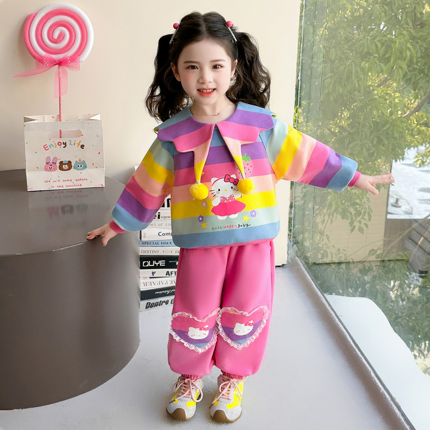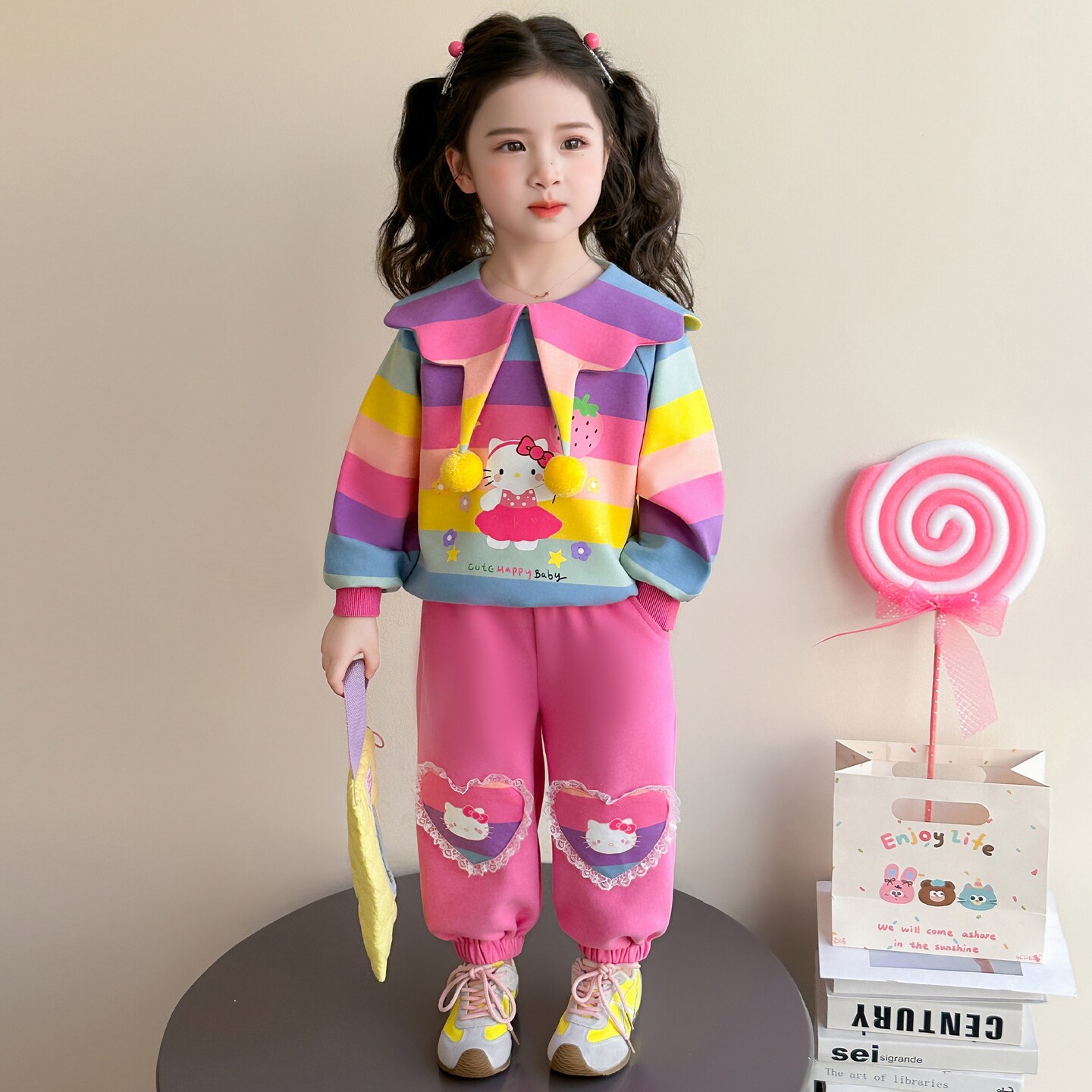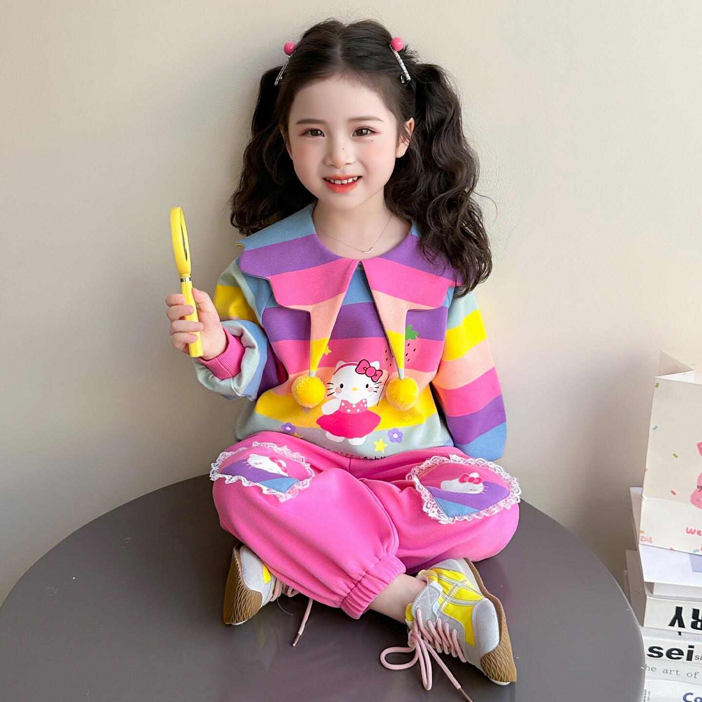 女童春秋款彩条套装2026新款洋气时髦儿童女宝宝春季春装早春卫衣
