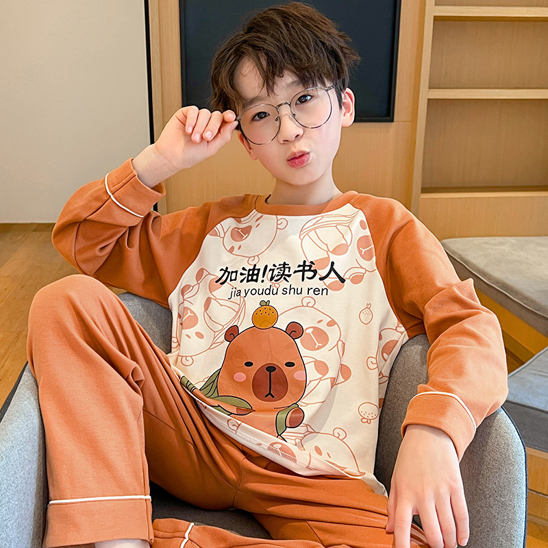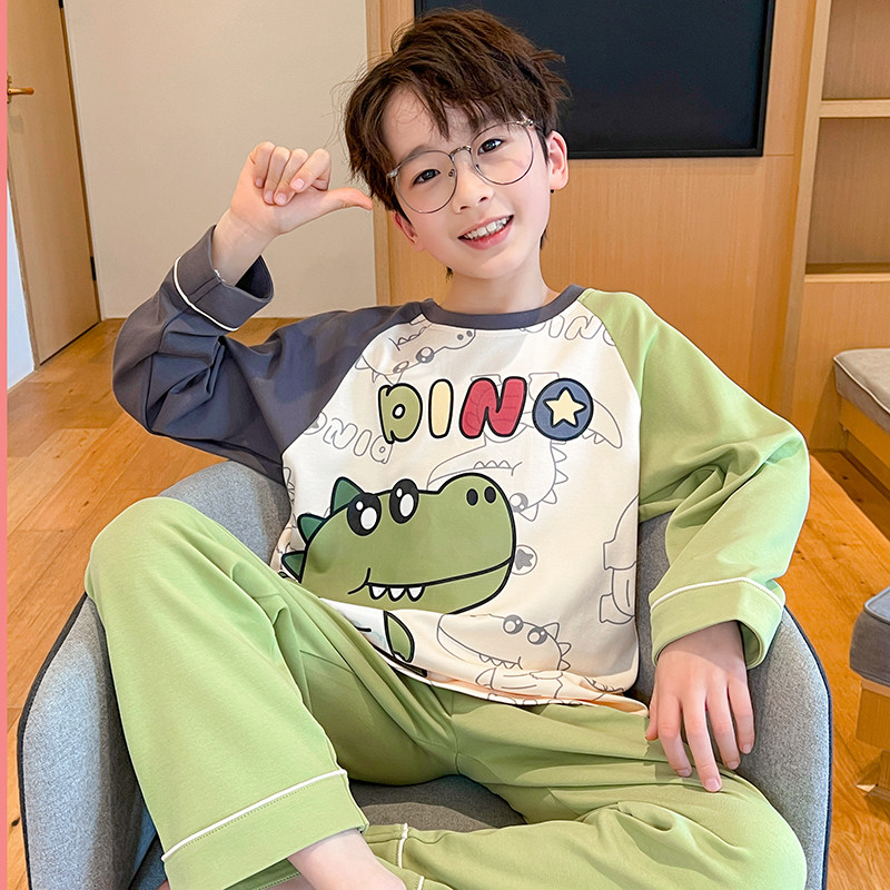 儿童睡衣男童春秋季纯棉长袖薄款2025新款男孩青少年大童奶龙套装