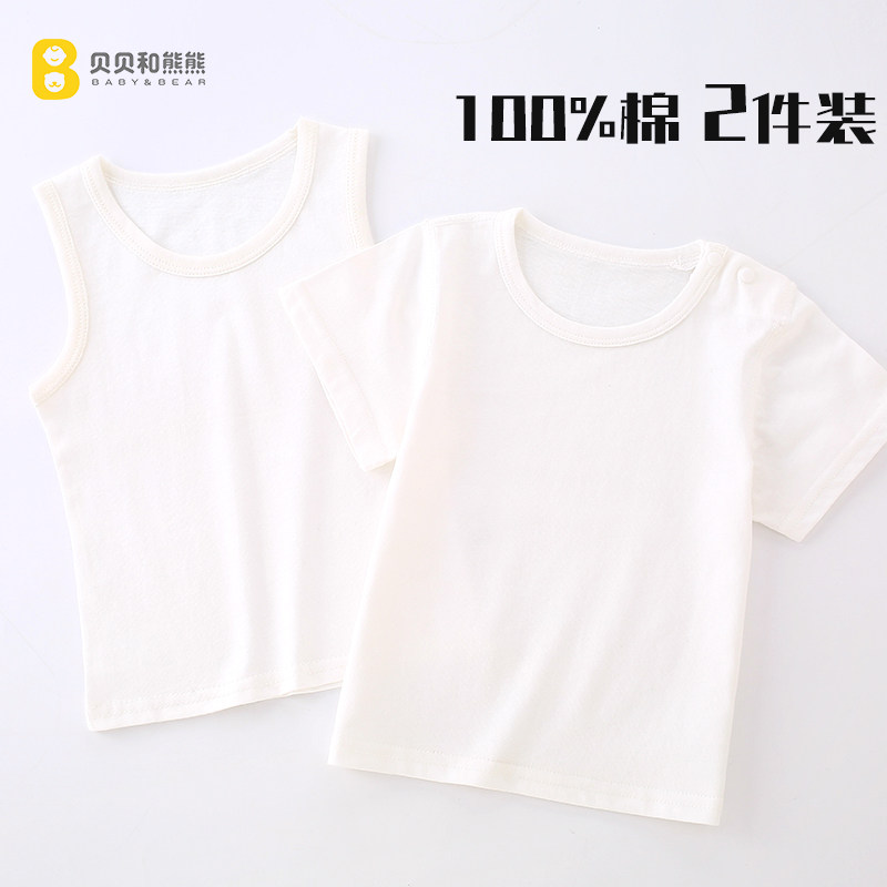 两件装纯棉男童背心短袖夏季a类儿童纯白色女童薄款无袖t恤童装夏