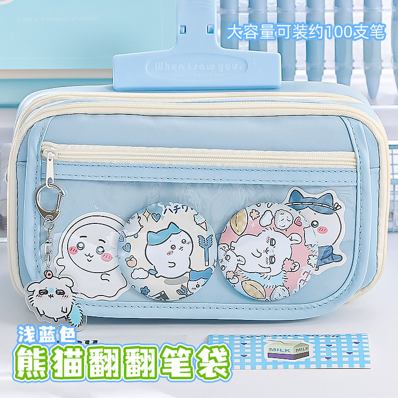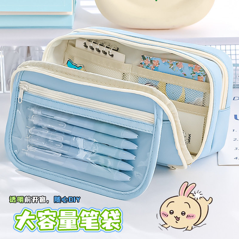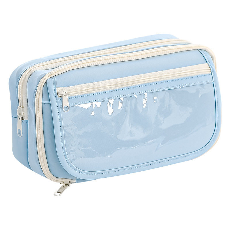 透明笔袋可放吧唧小卡吉伊大容量耐脏痛包笔袋高颜值ins风初中女生小学生文具盒浅蓝色纯色简约可爱铅笔袋