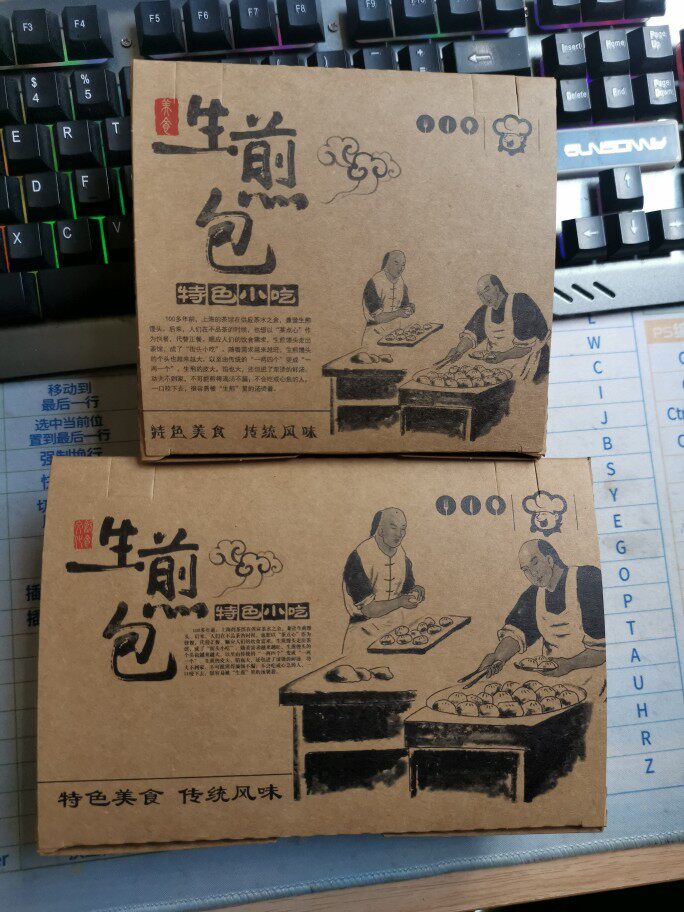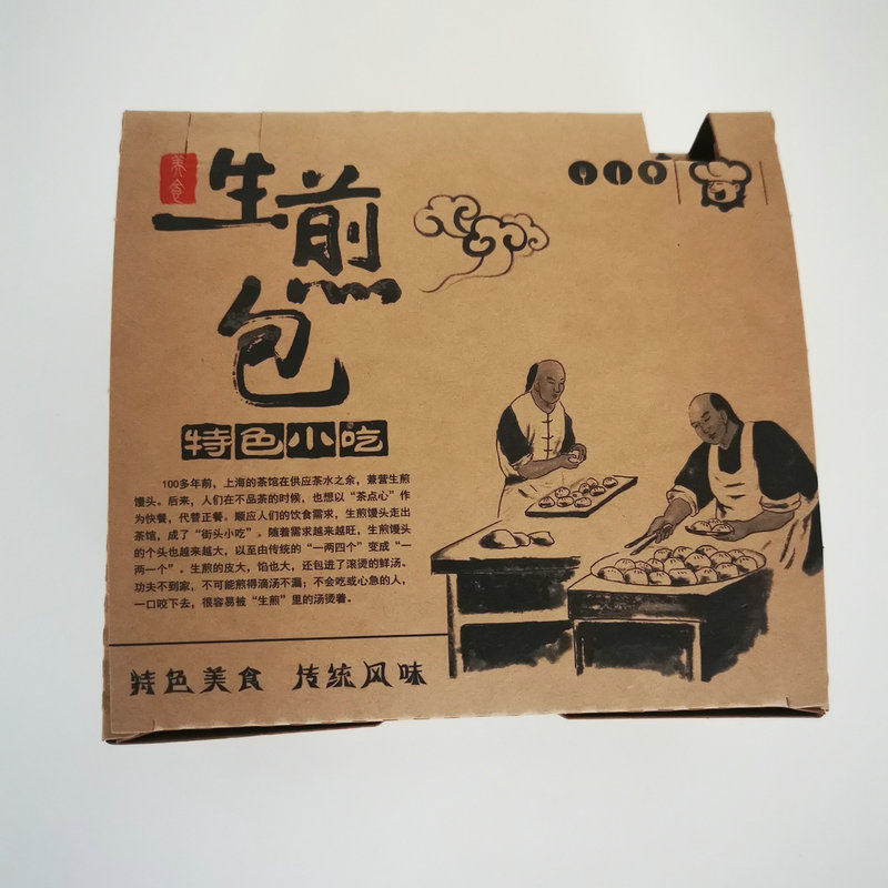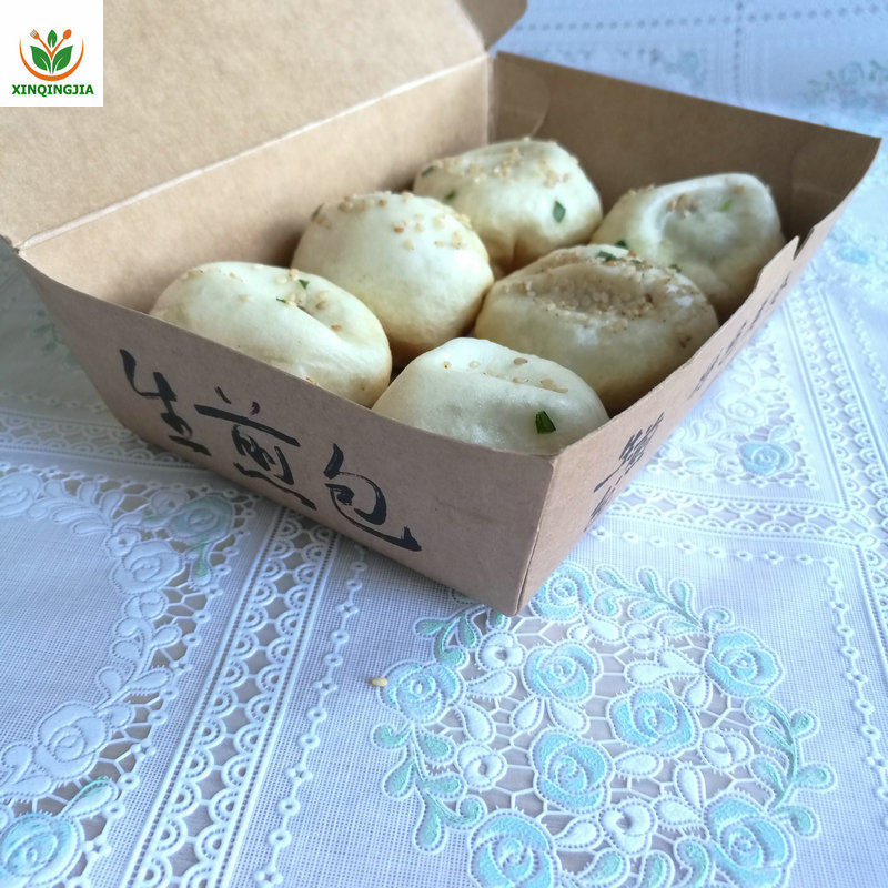 一次性牛皮纸生煎包外卖纸盒小号4个装锅贴打包盒双透气孔纸餐盒