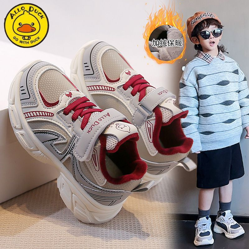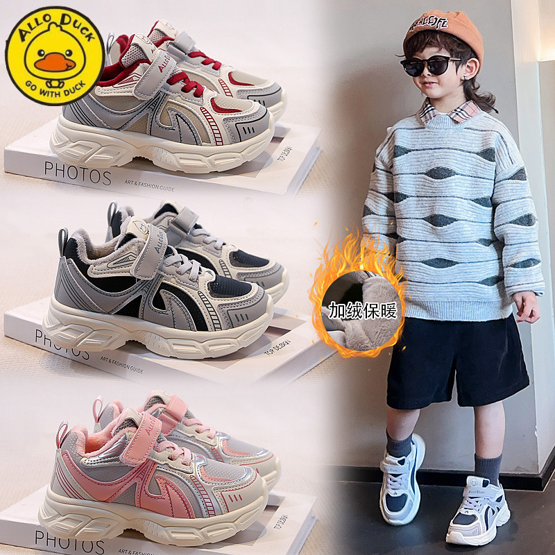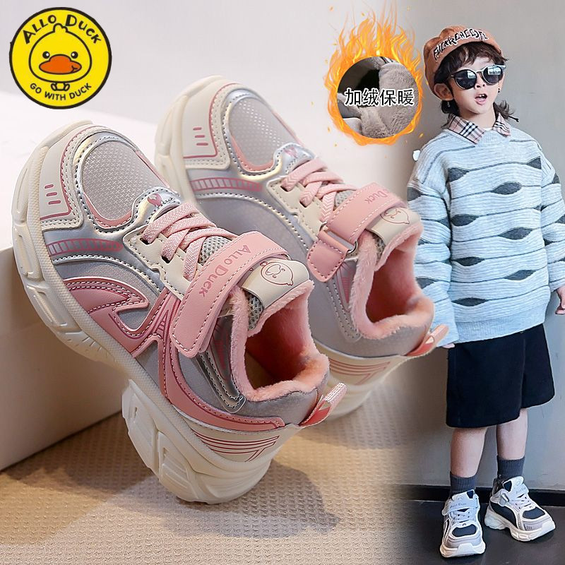 小黄鸭儿童加绒运动鞋女童二棉鞋冬季新款保暖抗寒轻便男童跑步鞋