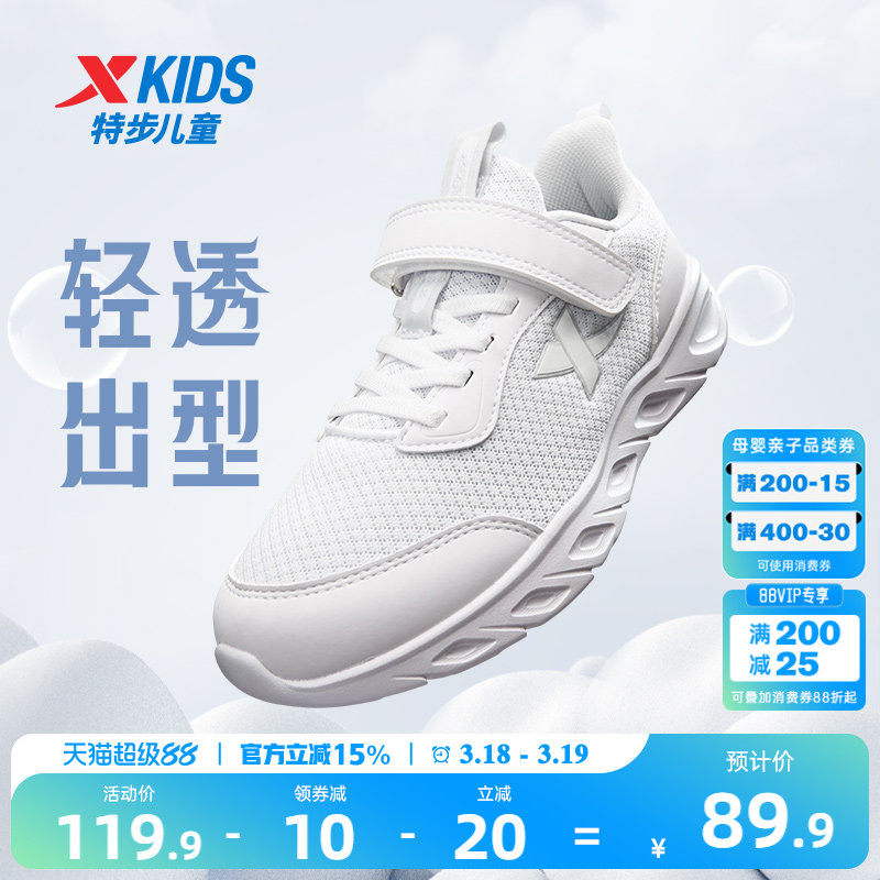 特步儿童2026年春夏新款女童网面跑步鞋软底儿童男童小白鞋运动鞋