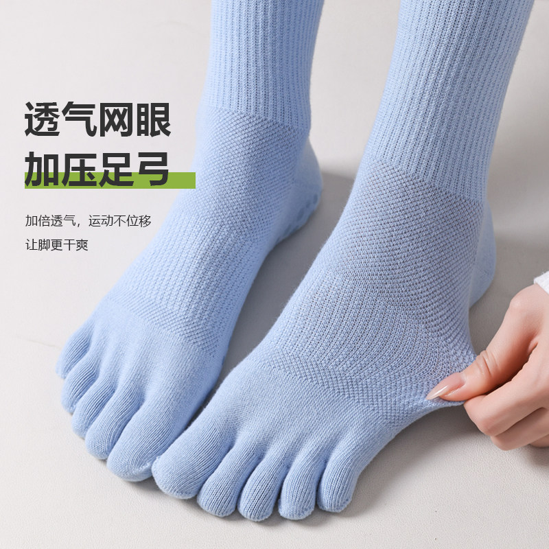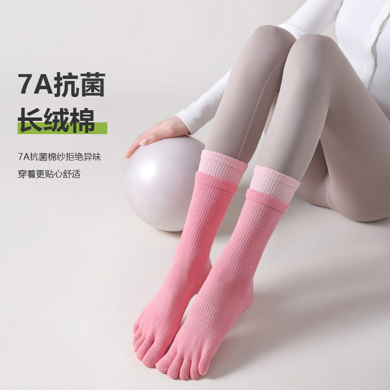 五指瑜伽袜子女网眼透气普拉提中筒袜专业健身跳操防滑分趾运动袜