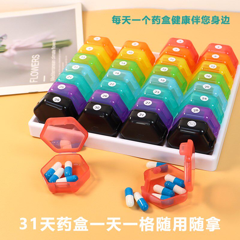 一个月31天早中晚便携式药盒家用旅行一天两次分格每日分装分药盒