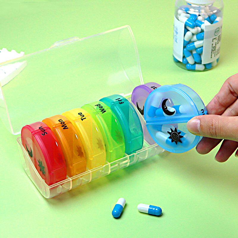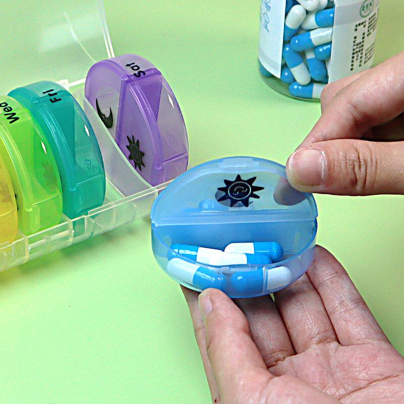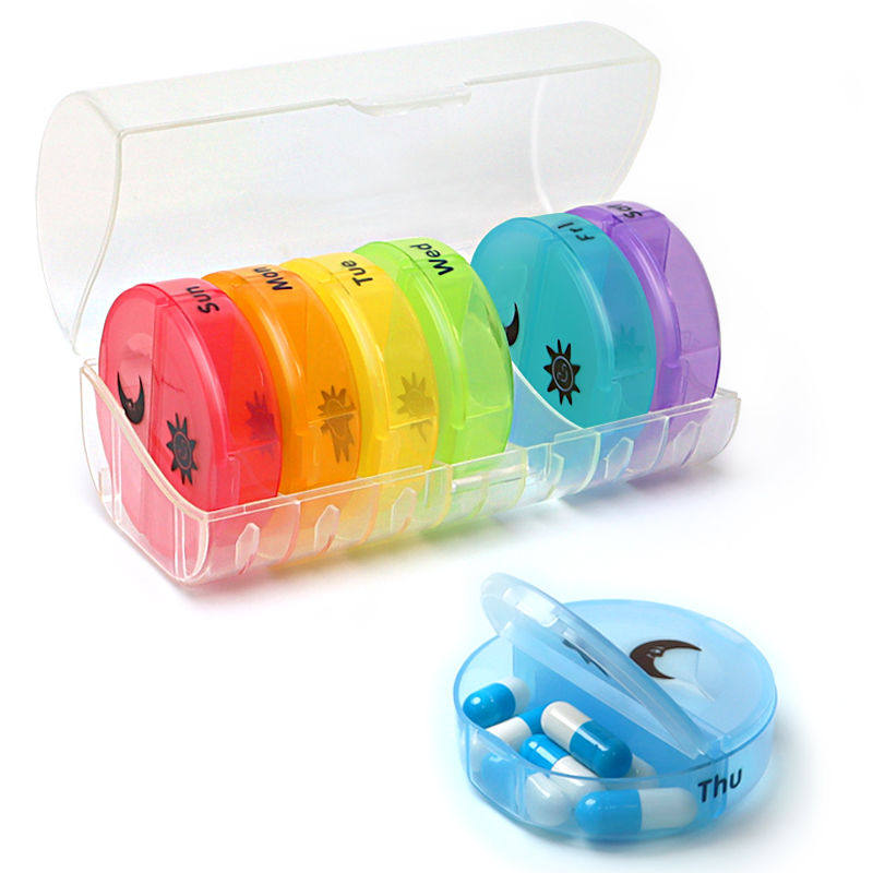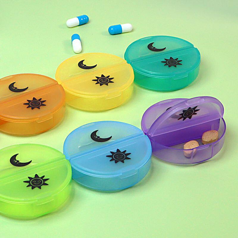 七天圆形迷你旅行防潮14格药盒便携式早晚两次密封药片药品分装盒
