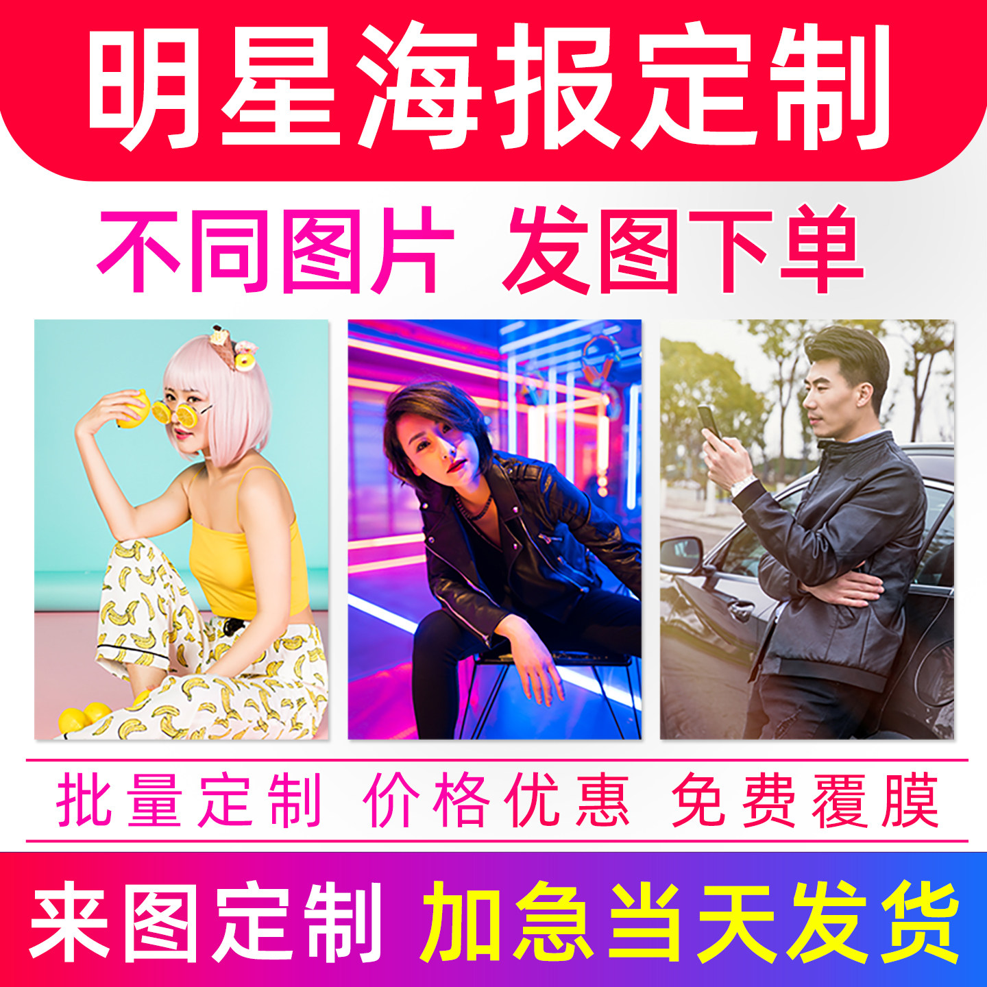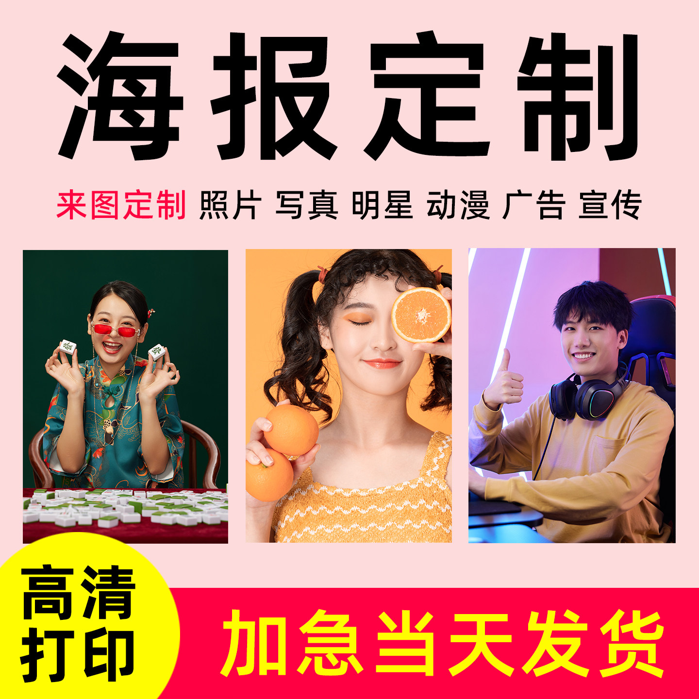 海报定制明星照片动漫挂画图片打印宿舍墙贴制作写真宝宝婚纱贴纸