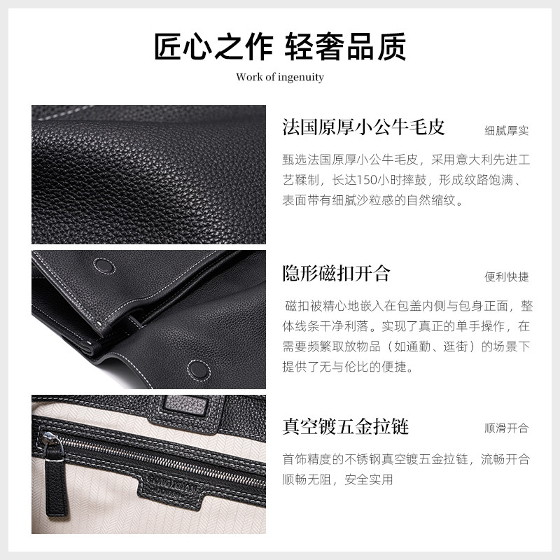 宫选福檐包邮差包头层牛皮翻盖女真皮单肩包大容量通勤包斜挎包