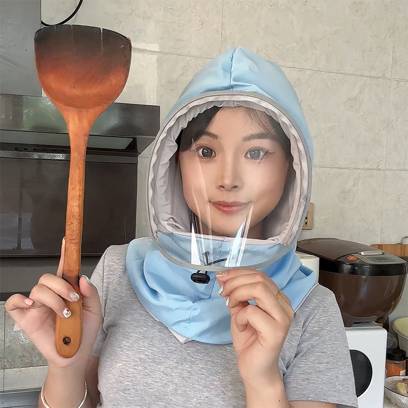 厨房帽子防油烟面罩女款做饭炒菜防油溅防护帽围脖一体防尘防飞沫