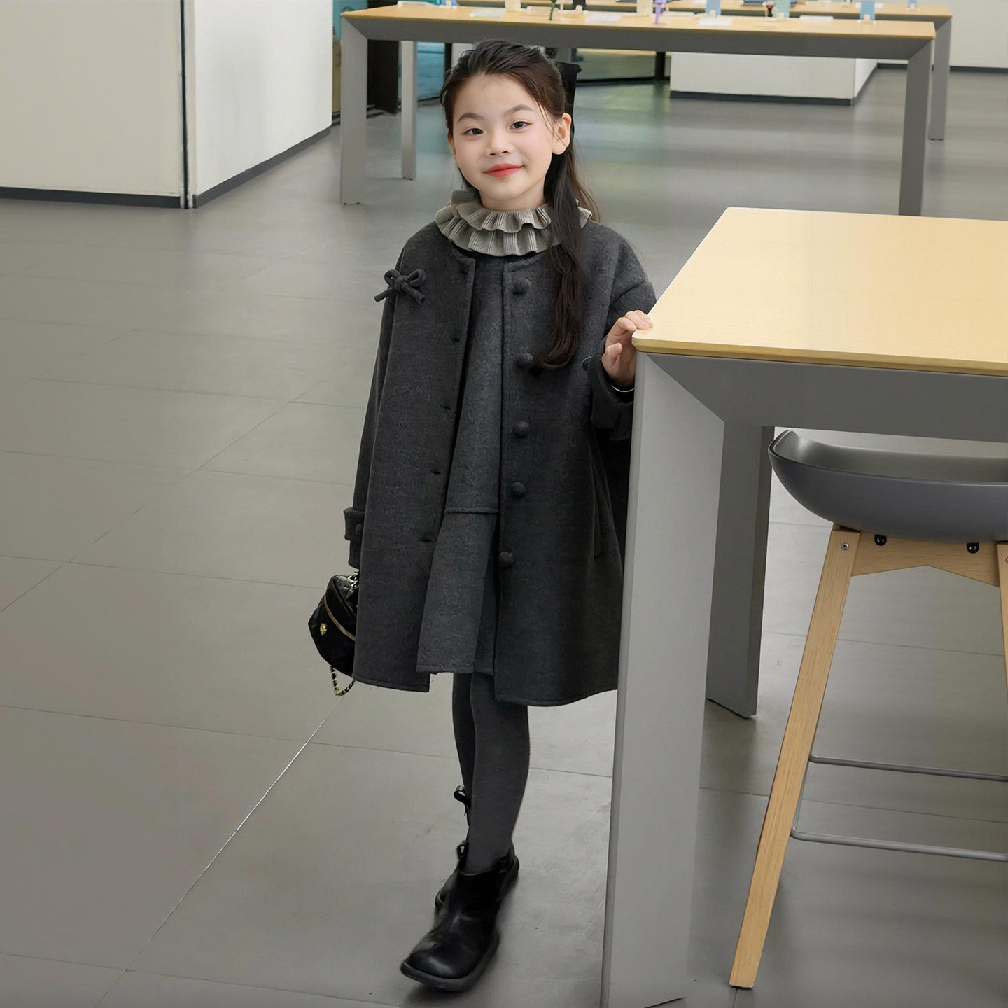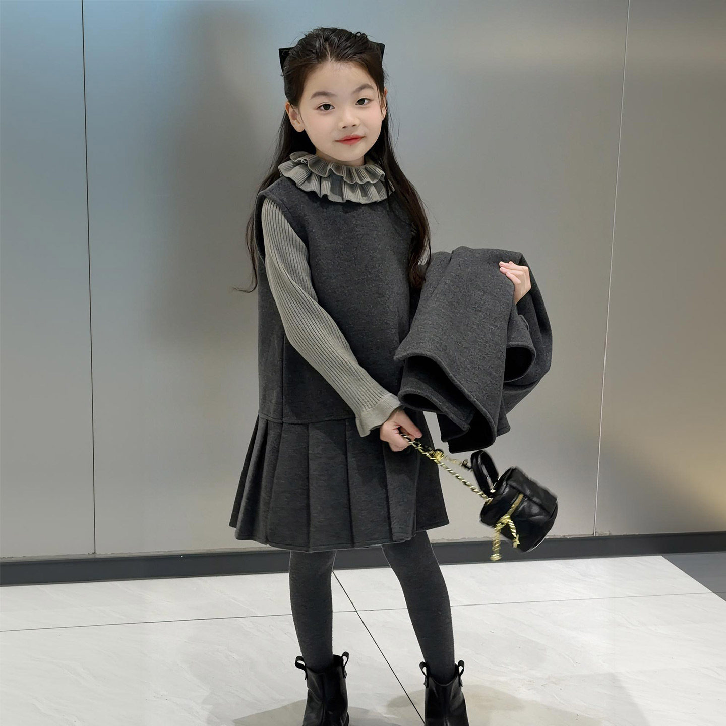 女童冬季羊毛呢子大衣套装童装背心裙子针织毛衣三件套女孩外套潮