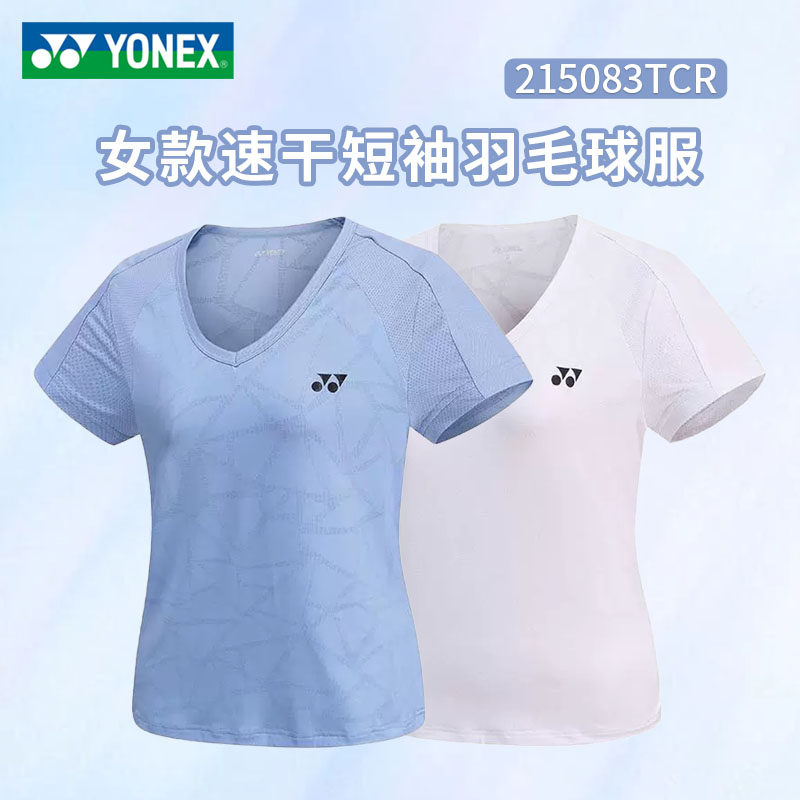 新款YONEX尤尼克斯羽毛球服短袖女款速干透气小V领运动T恤215083