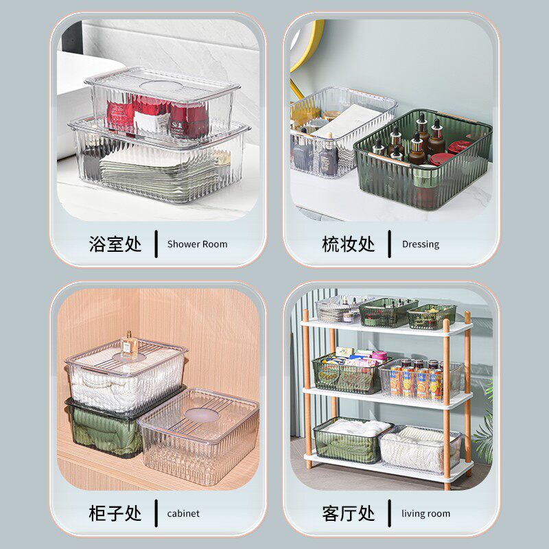 桌面化妆品收纳盒大号家用透明亚克力带盖零食玩具整理筐加厚箱子