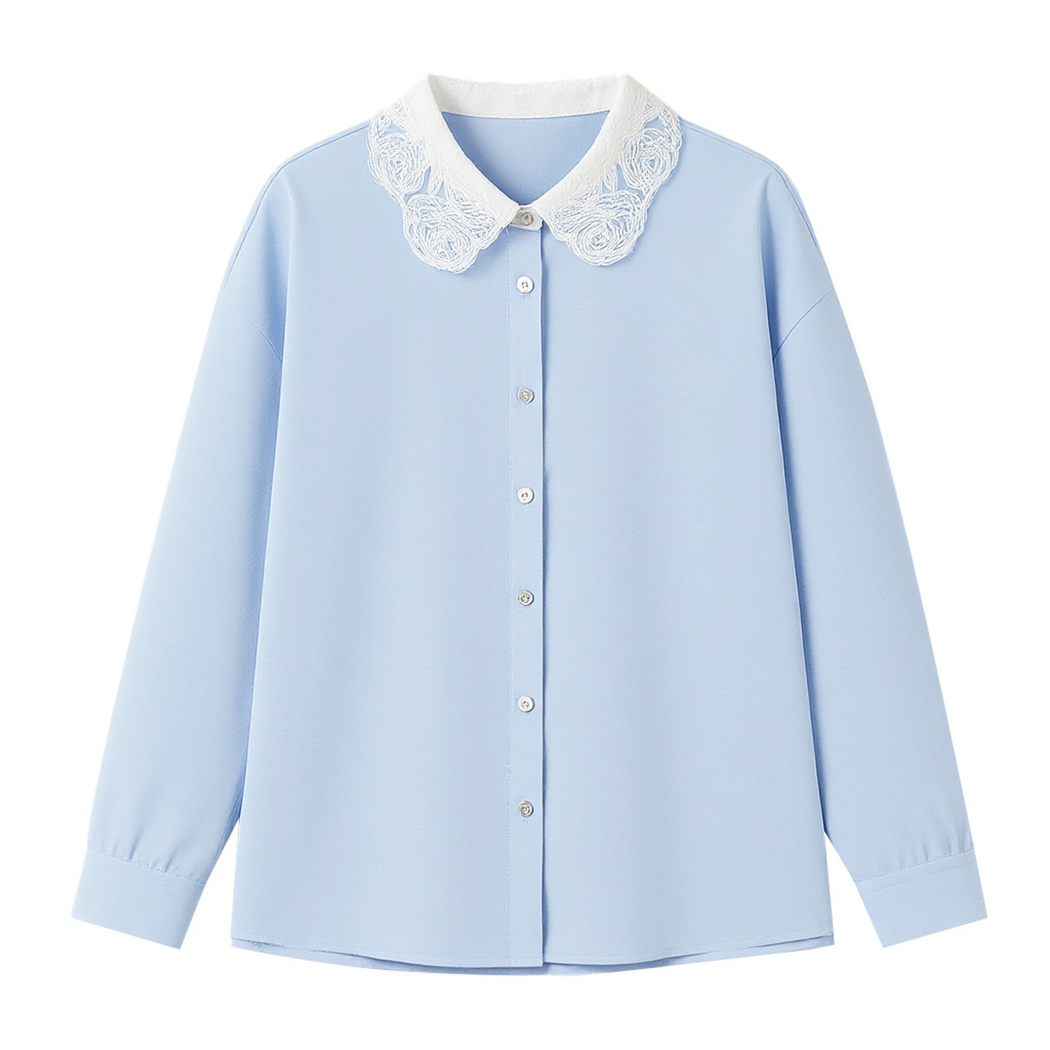 【大粒儿粉丝专享】秋水伊人气质领口拼接蕾丝衬衫女纽扣门襟上衣