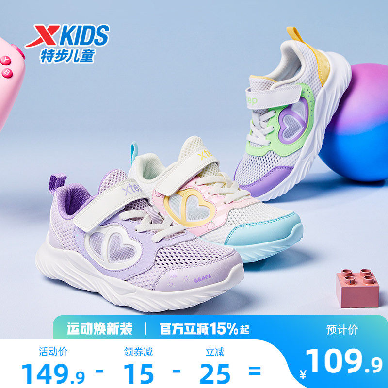特步童鞋儿童魔术贴休闲鞋夏季新款女童运动鞋幼小童网面透气鞋子