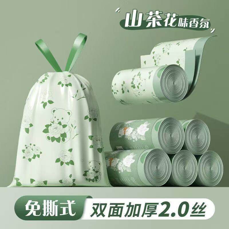 艾草驱蚊印花垃圾袋加厚家用手提式免撕拉绳防蚊香氛特厚厚款收口