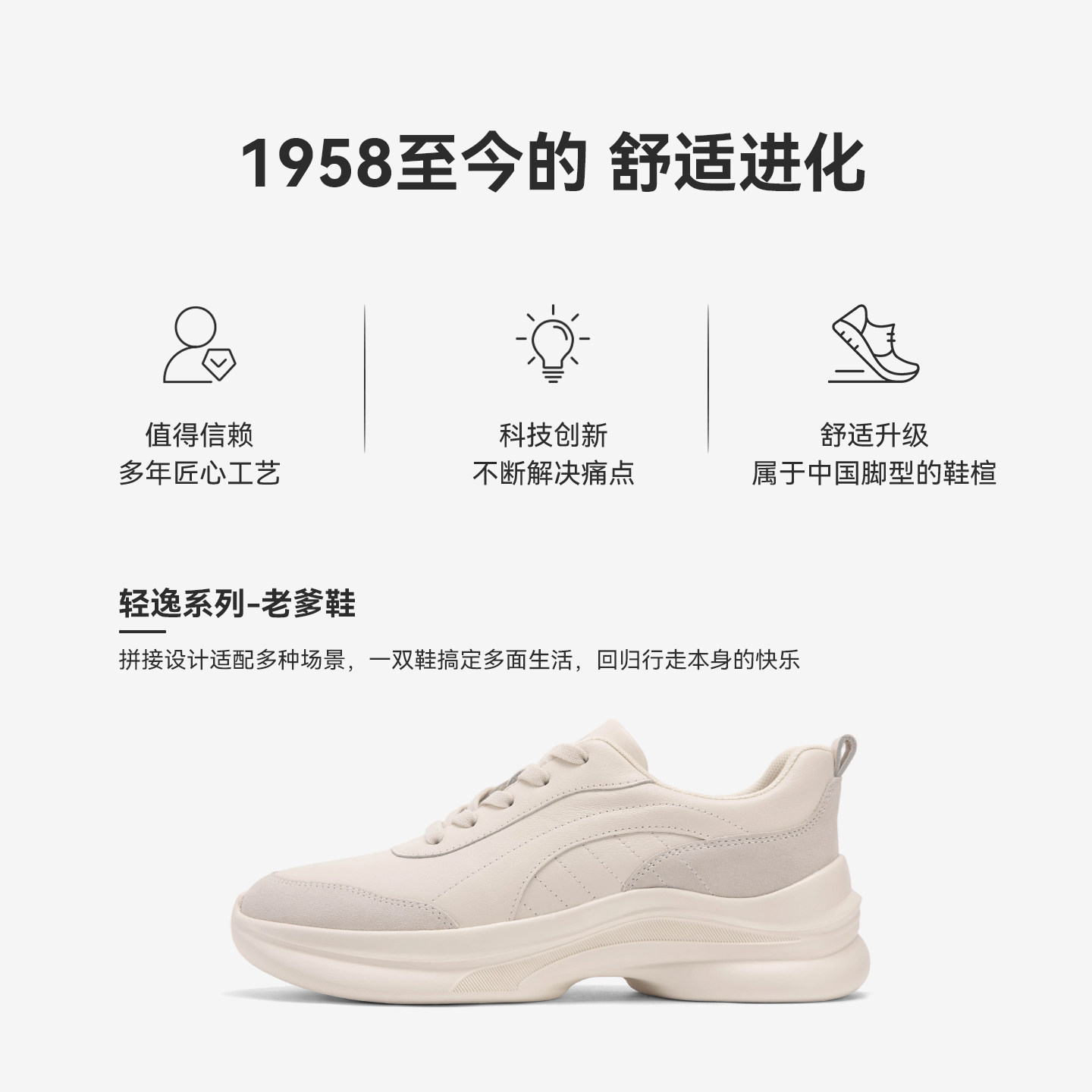 暇步士老爹鞋女26春新款真皮舒适增高百搭休闲运动鞋厚底小白鞋女