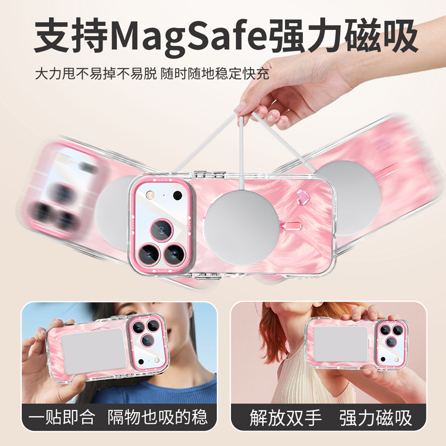 沃艾尼适用苹果17ProMax手机壳小众新款iPhone17磁吸防摔套16pro高级感15带挂绳14plus气囊硅胶13支架12女11