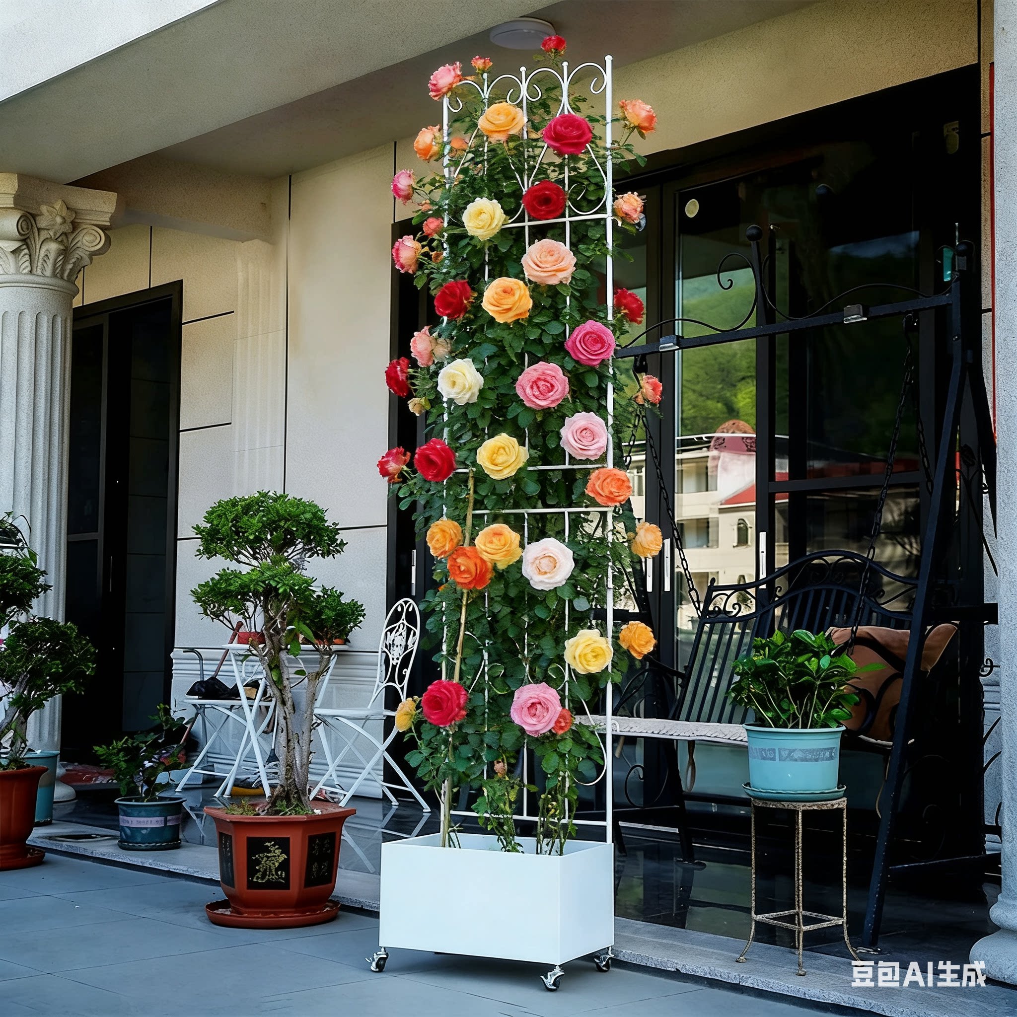 带花箱爬藤架三角梅月季铁线莲网格架子风车茉莉攀爬阳台花园种菜