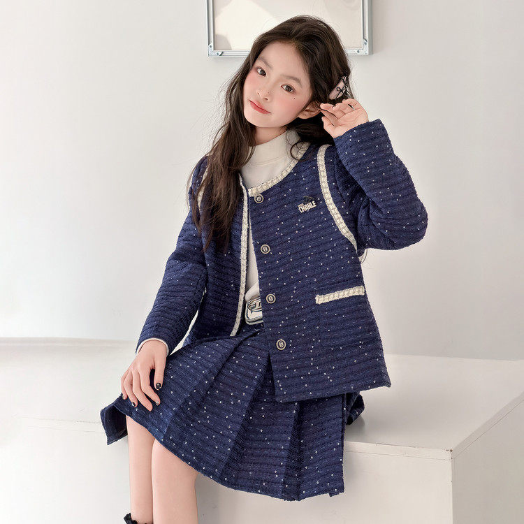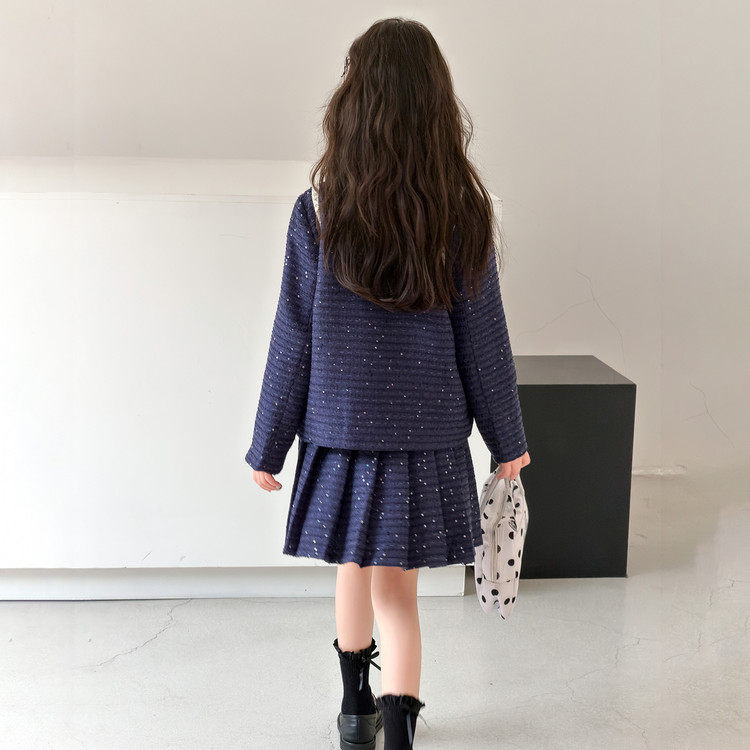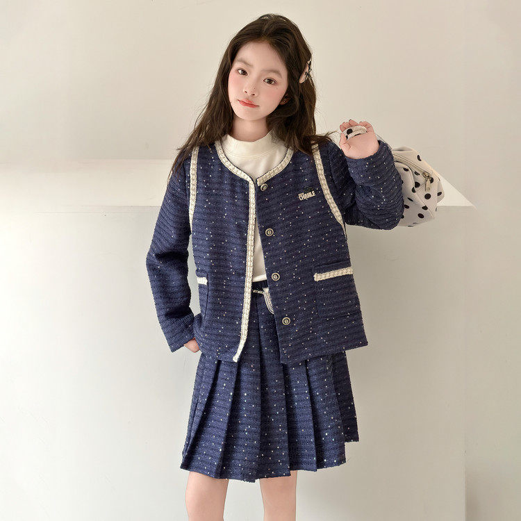 女童小香风套装春装2026新款女大童超好看外套百褶裙子初中生衣服