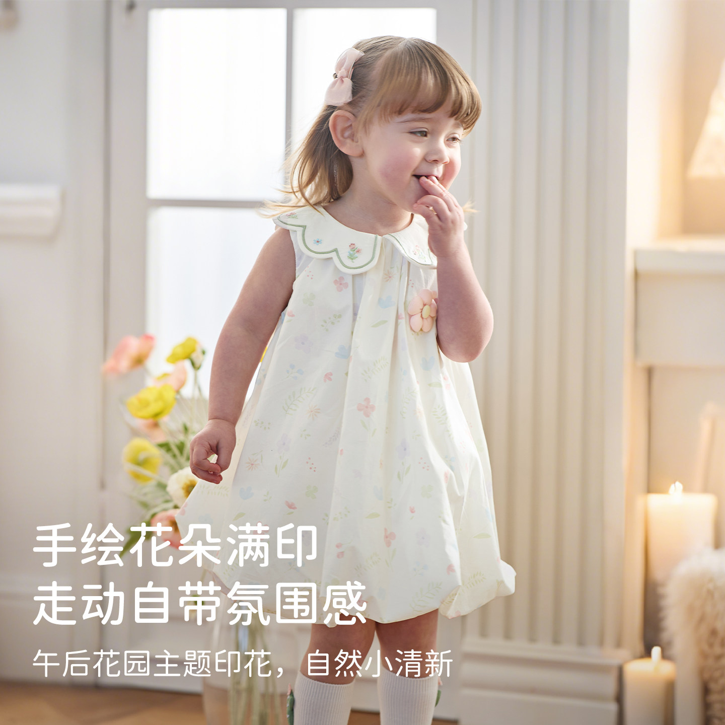 戴维贝拉女童纯棉连衣裙儿童2026新款碎花裙宝宝夏装花苞裙子A类