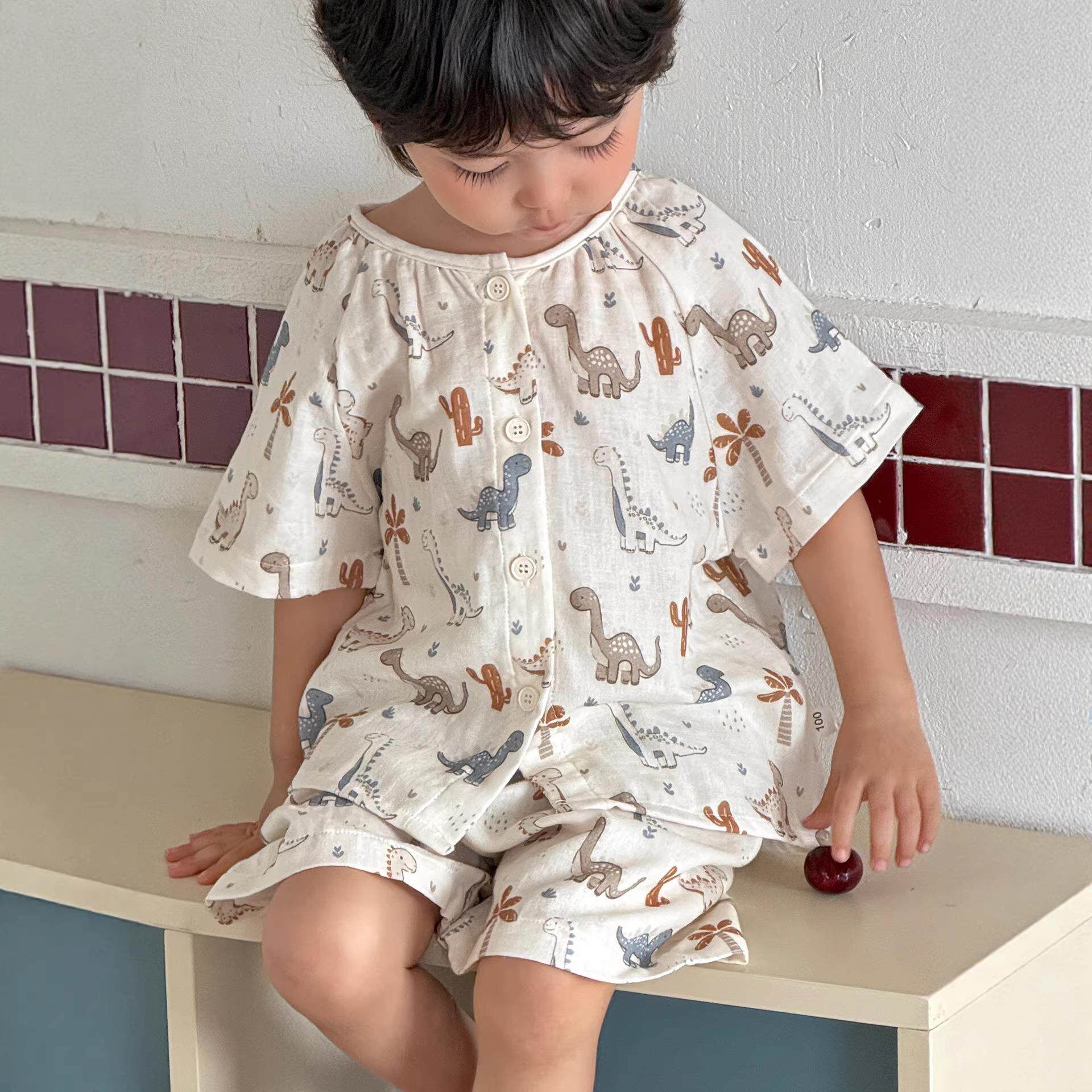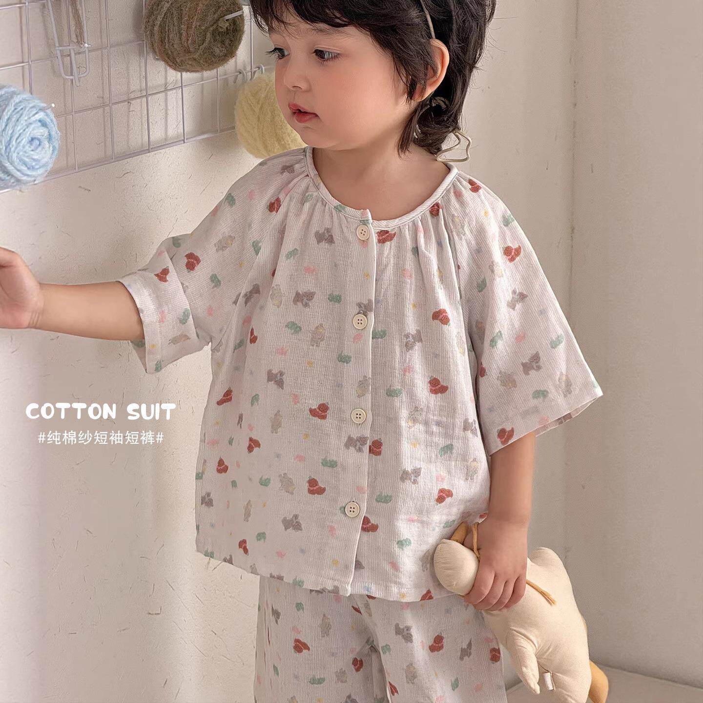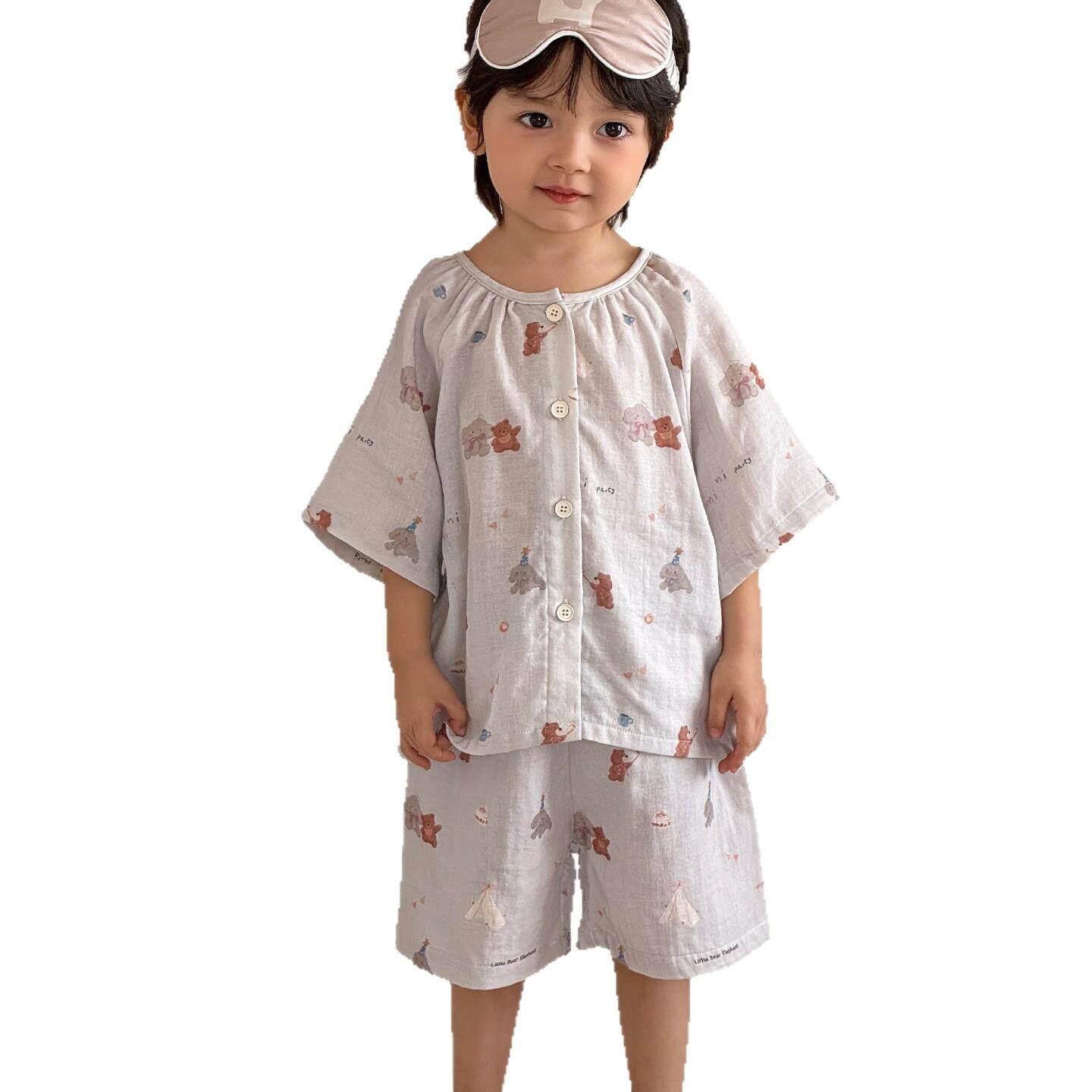 男童睡衣纯棉A类2026新款男宝宝短袖短裤纱布家居服套装夏季薄款