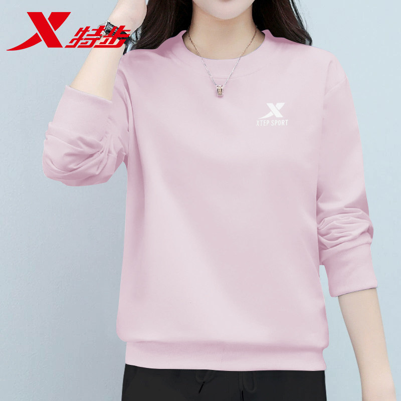 特步圆领卫衣上衣T恤女款春季官方旗舰2026新款百搭长袖潮流内搭