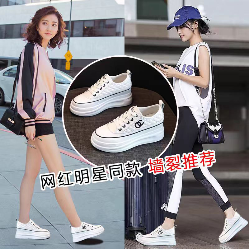 内增高小白鞋女厚底真皮不累脚女鞋轻便不累脚鞋子女软底舒适板鞋