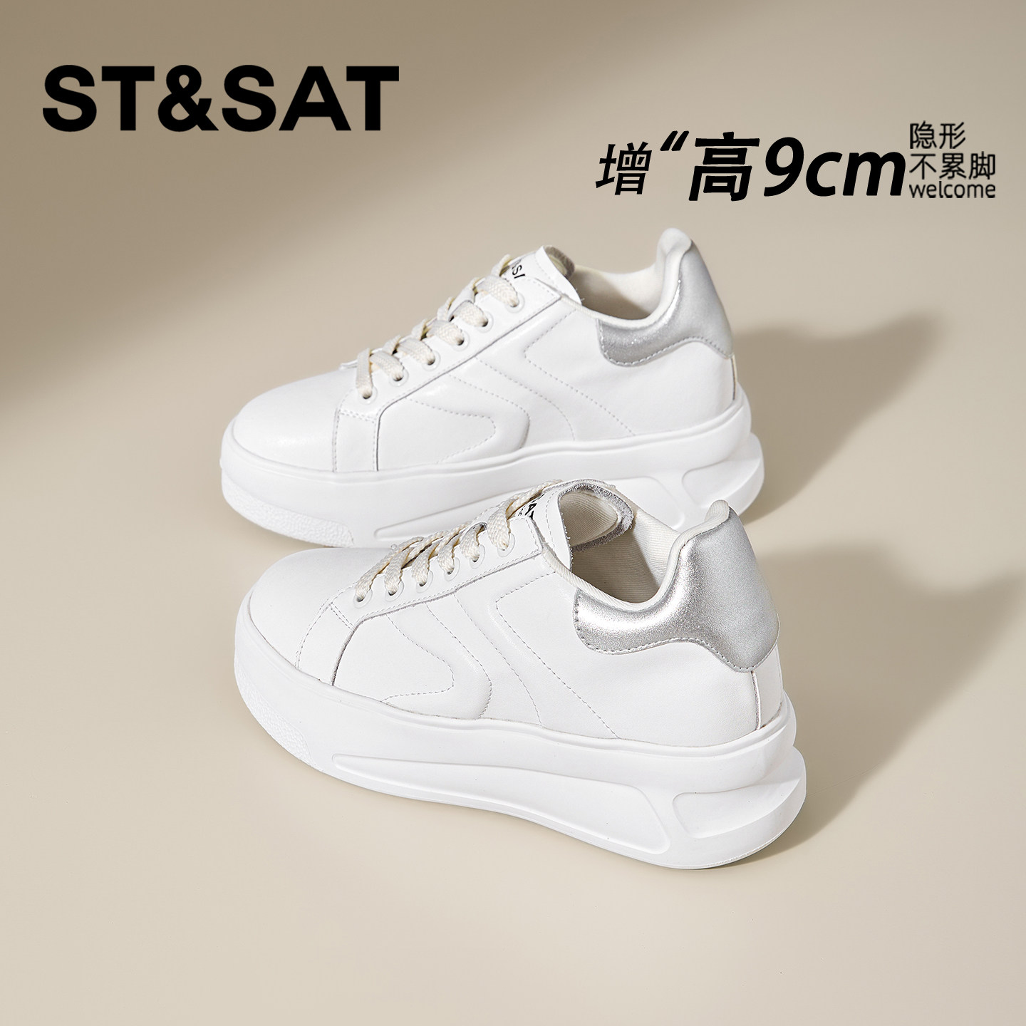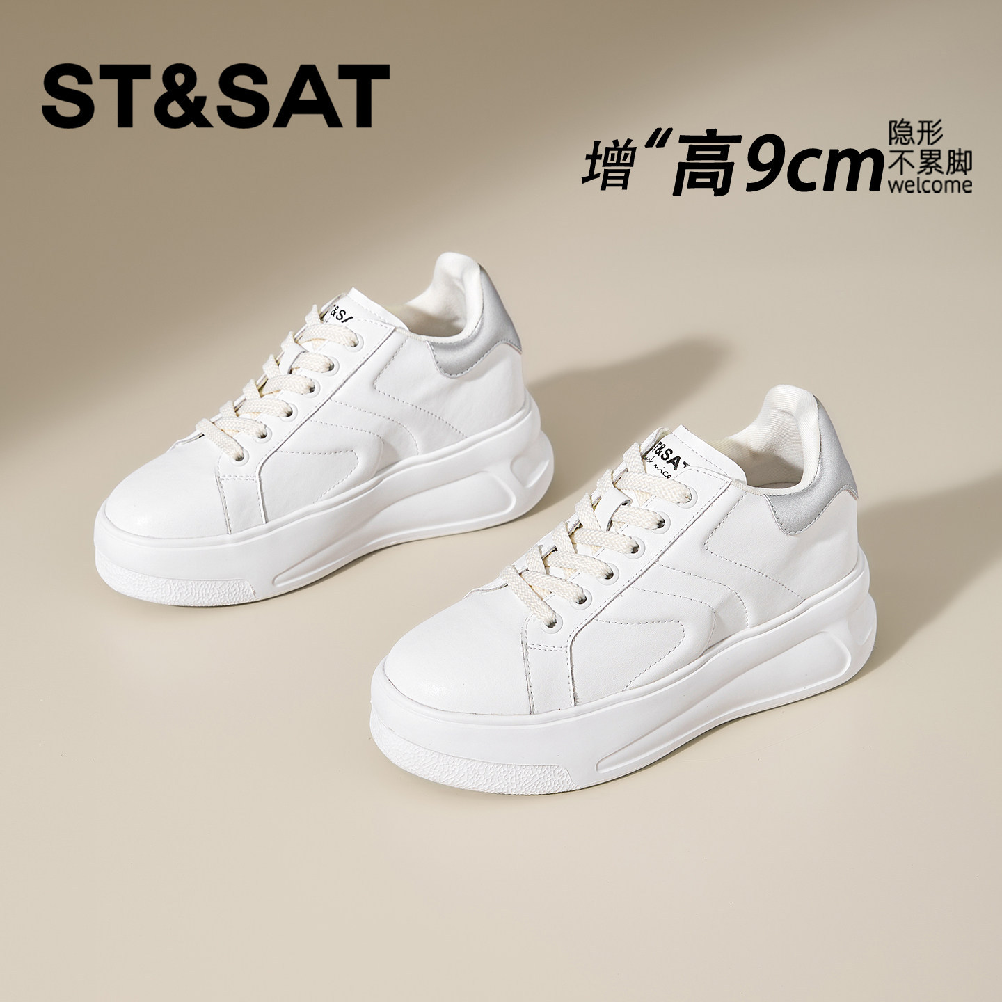 星期六9CM内增高小白鞋女款百搭休闲增高不累脚松糕鞋小个子板鞋