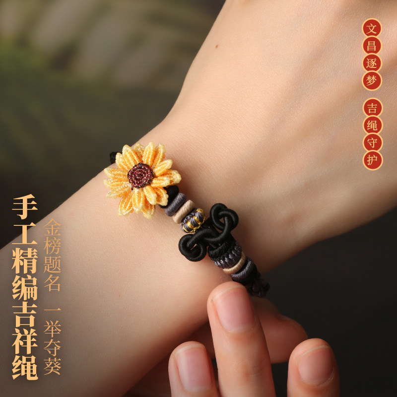 上岸手绳手工编织文昌结一举夺魁手链可穿珠金榜题名红绳新款可调