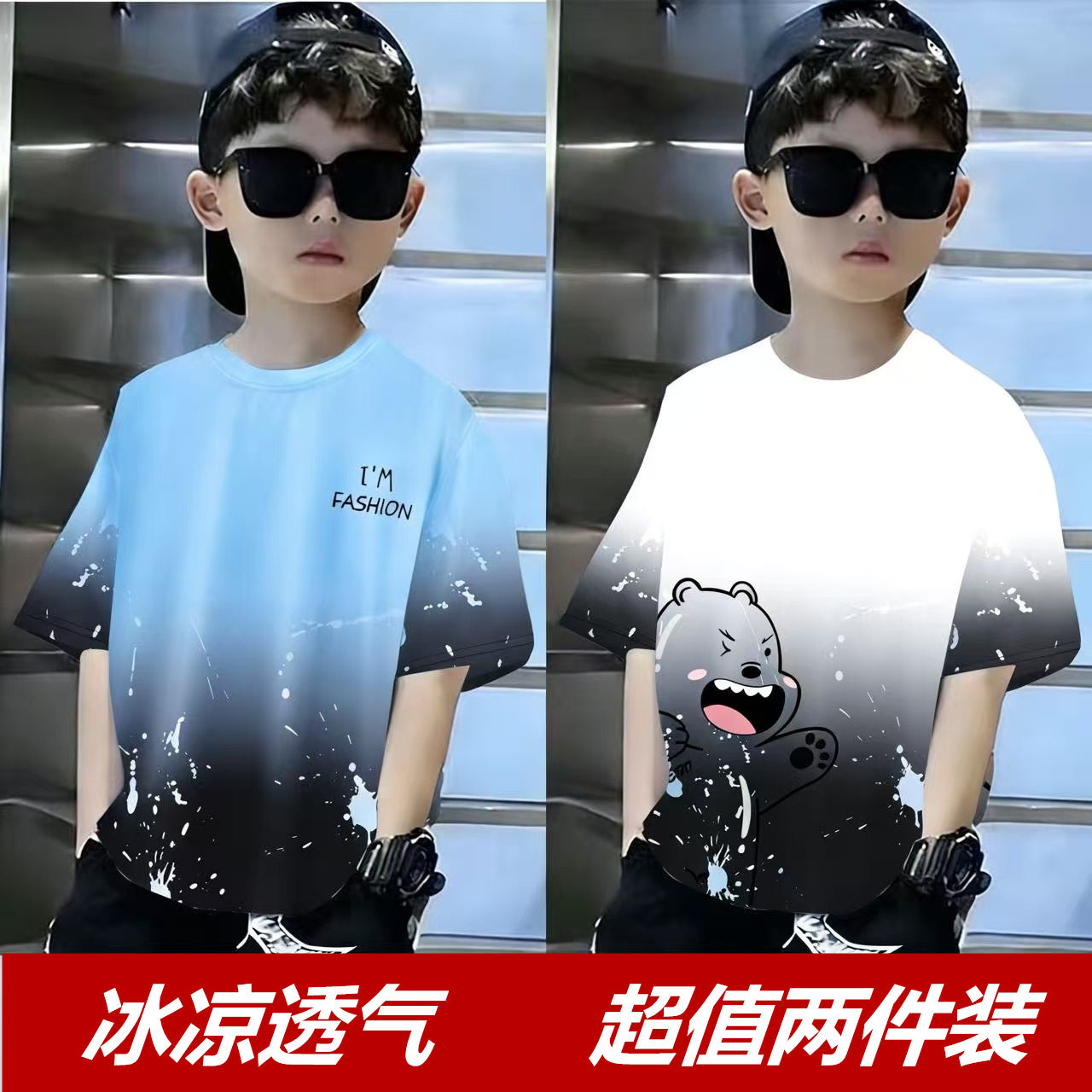 男童短袖t恤冰丝夏装2026新款儿童半袖夏季男孩冰凉透气上衣童装