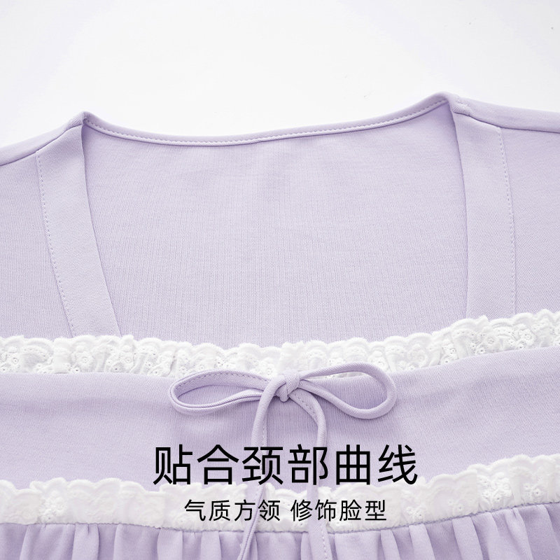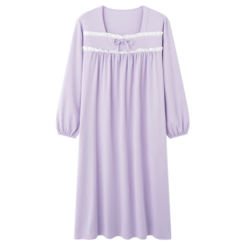 睡裙2026新款女款春秋纯棉长袖连衣裙简约宽松蝴蝶结中年居家裙子