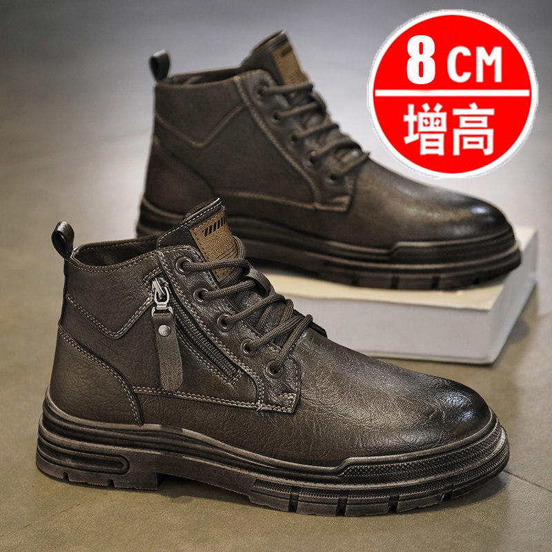马丁靴男款复古皮靴冬季内增高8CM靴子男士机车战靴短靴切尔西靴