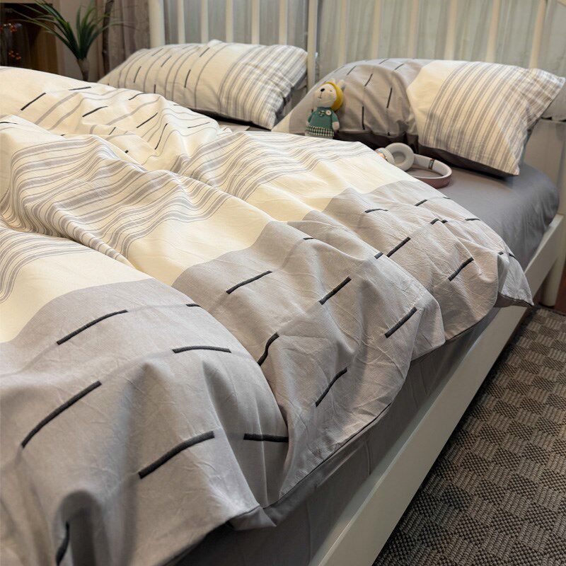 高级感色织条纹北欧提花床上四件套男生纯棉床单被套床笠床品1.8m