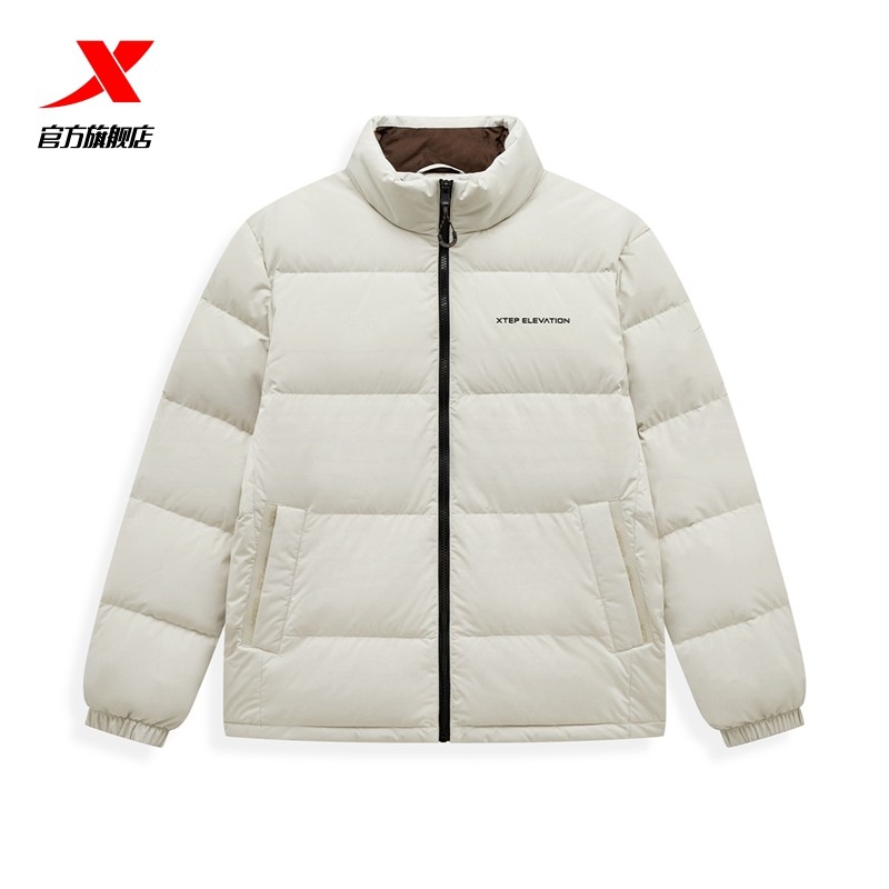 特步立领羽绒服男装官方正品秋冬新款保暖外套加厚棉服男夹克上衣