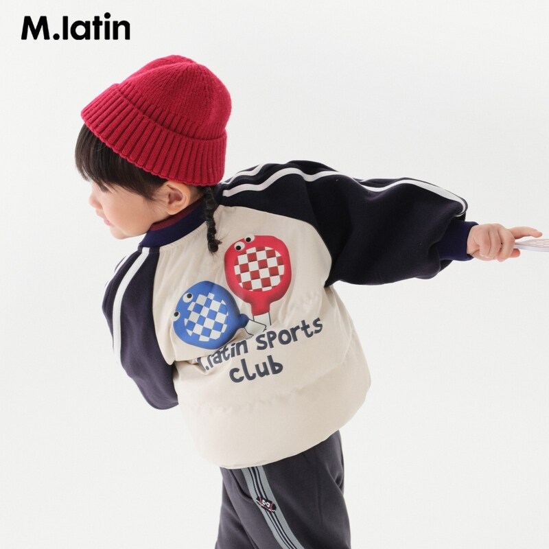 马拉丁童装儿童羽绒服24冬男小童网球拍印花运动风轻薄羽绒服614914906D