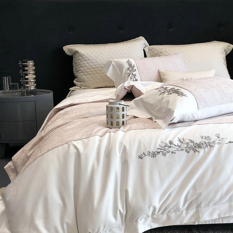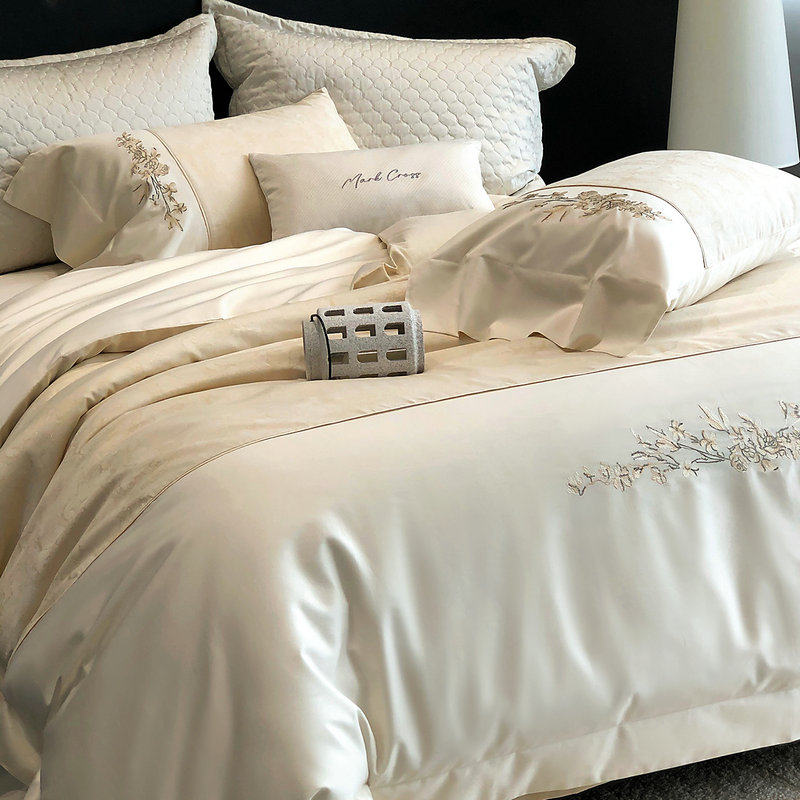 高端简约100支全棉床上四件套刺绣纯棉床品女生轻奢高级感主卧室