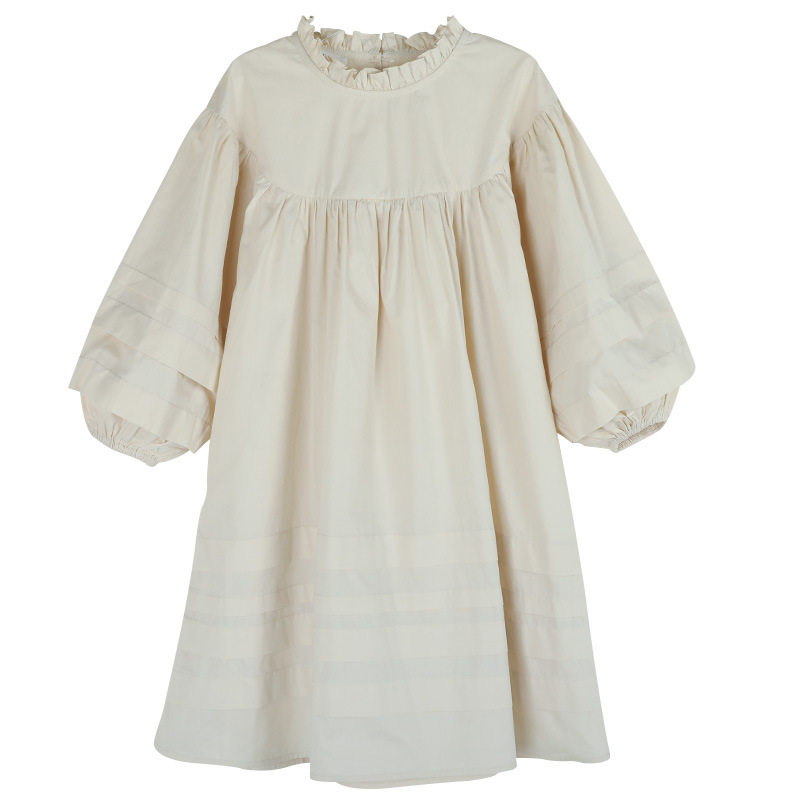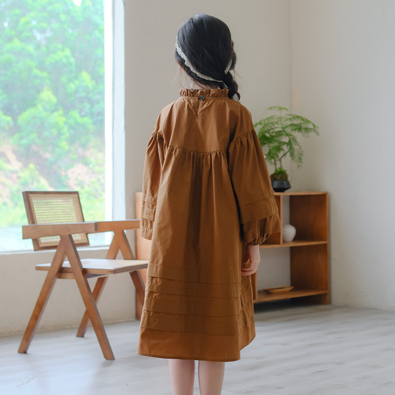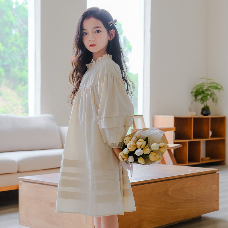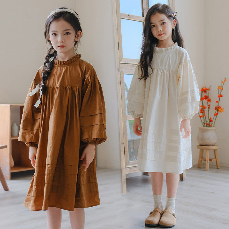 女童春秋花边领连衣裙中大童灯笼长袖棉布裙森系文艺棉布裙初中生