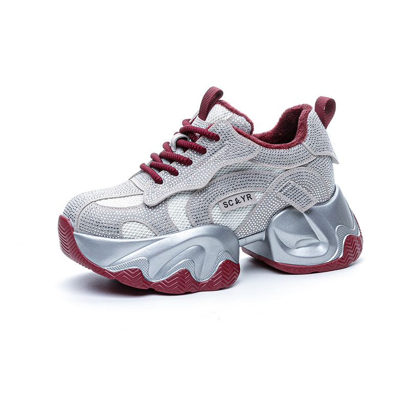 内增高水钻老爹鞋女款真皮2025新款春夏季超火厚底休闲小码女鞋33