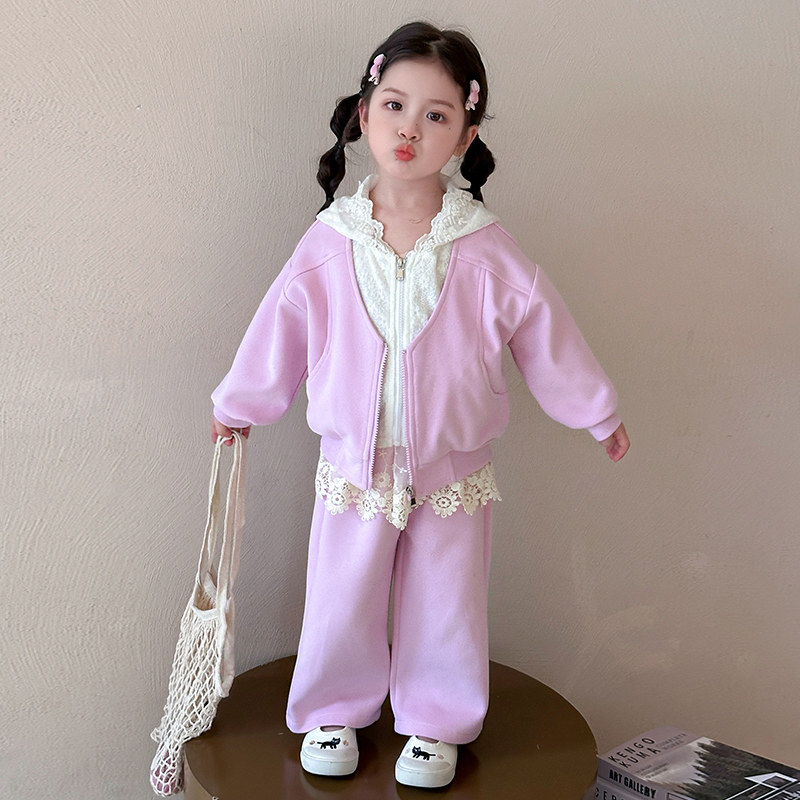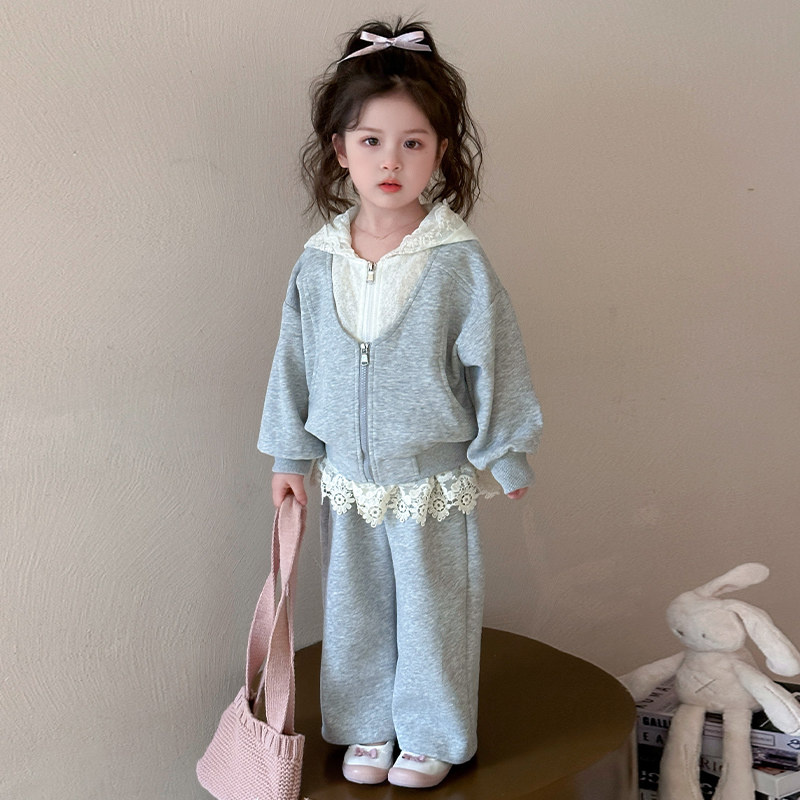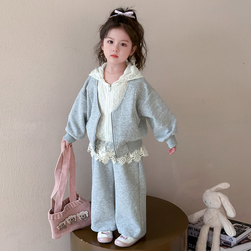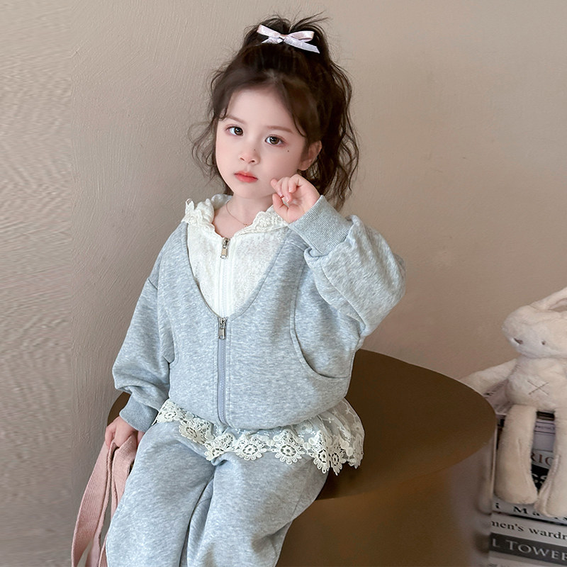 女童套装春装2026新款洋气儿童蕾丝花边春季女孩宝宝初秋运动春秋