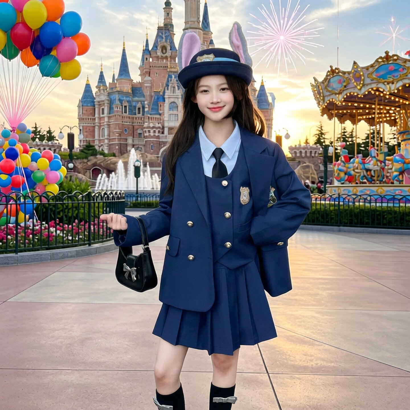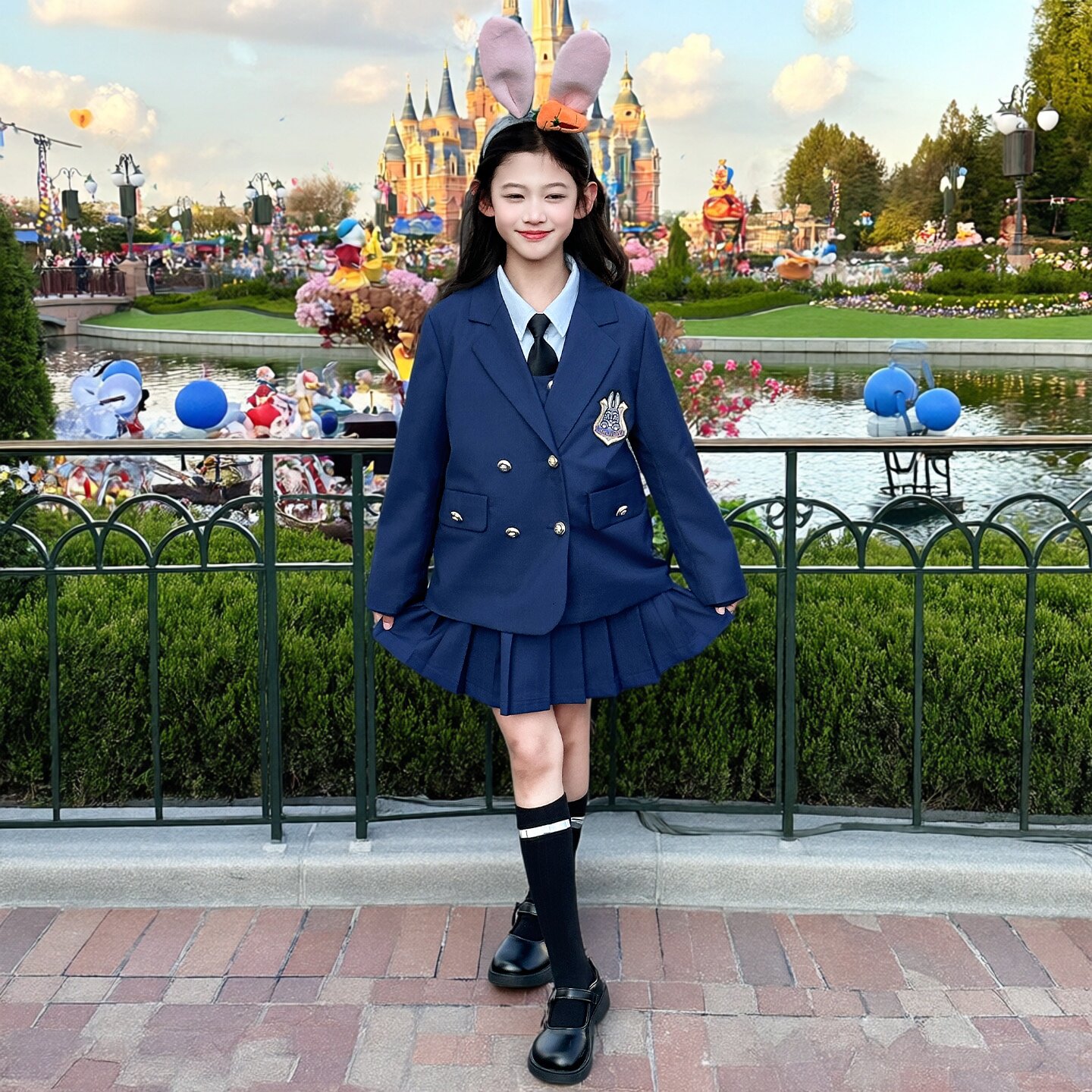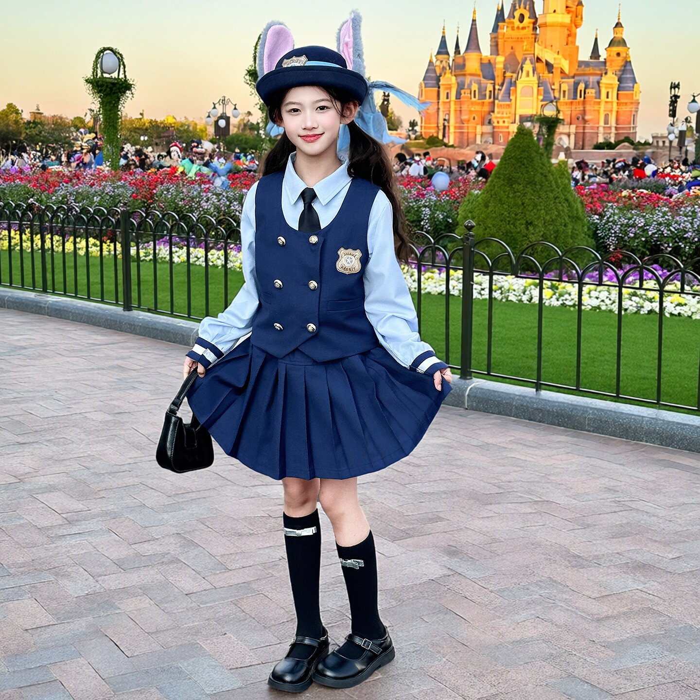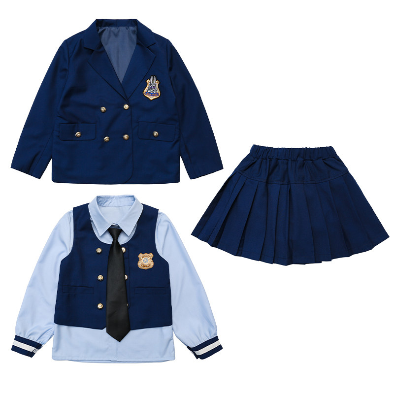 女童jk套装2026春装新款洋气中大童兔子警官学院风外套裙子四件套