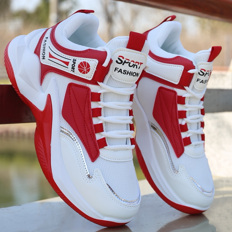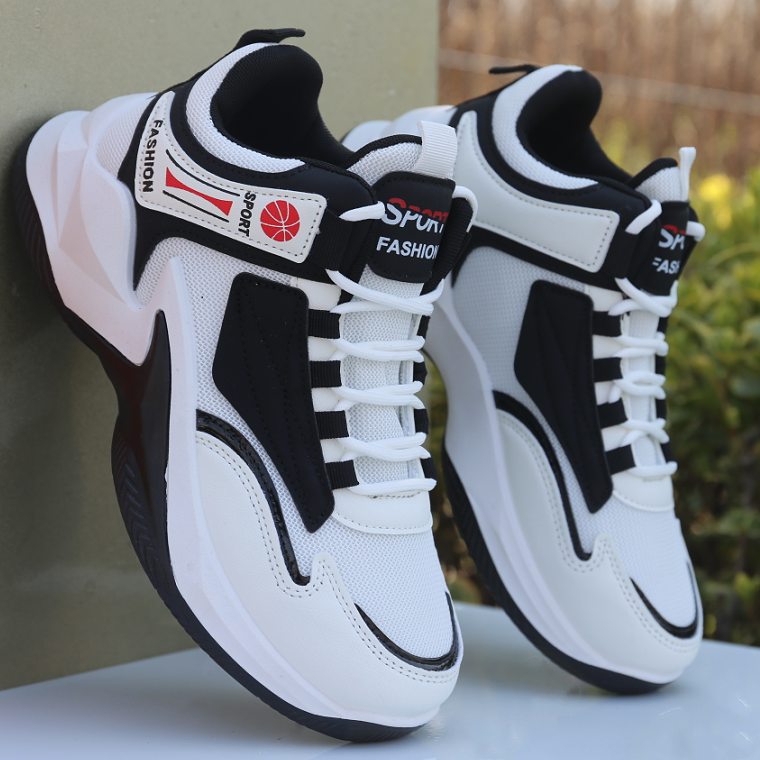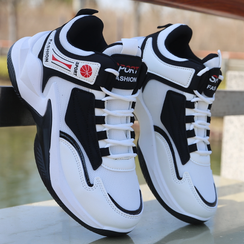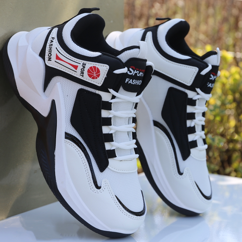 男鞋新款春夏季高帮板鞋男透气网面皮面运动鞋防滑耐磨学生球鞋子
