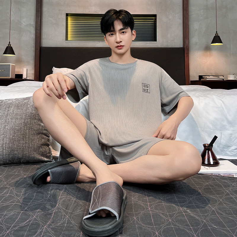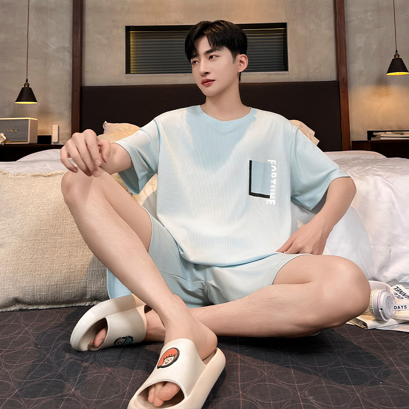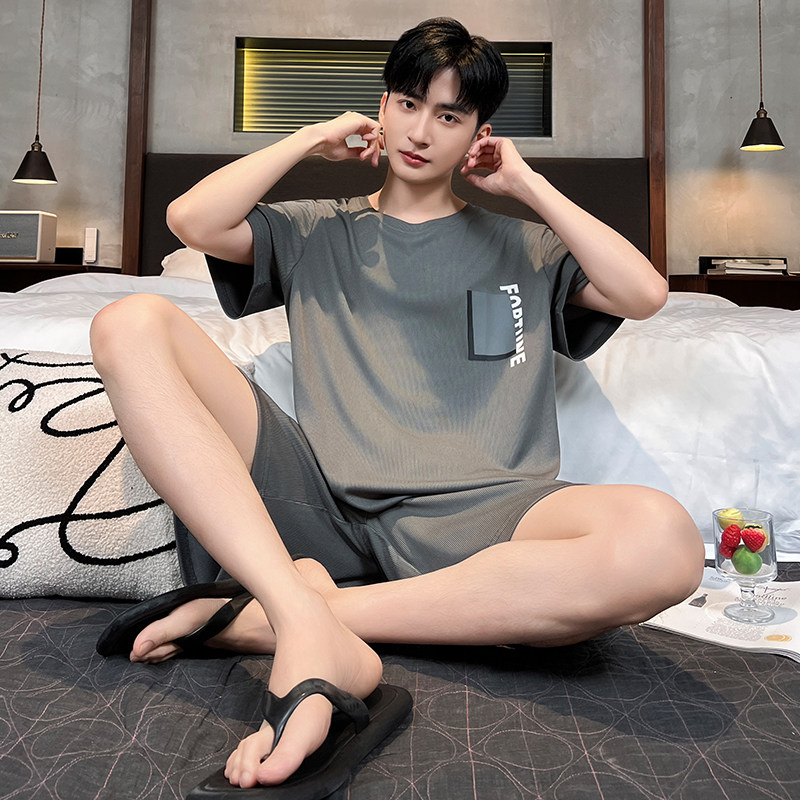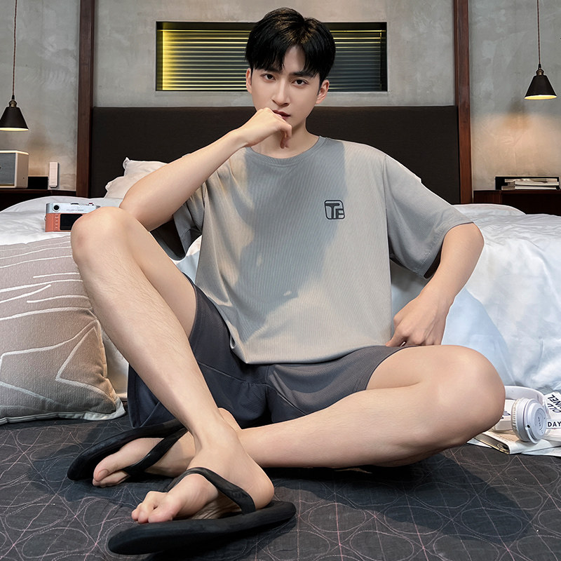青少年凉感冰丝家居服套装睡衣男款短袖短裤休闲夏季薄款睡衣睡裤