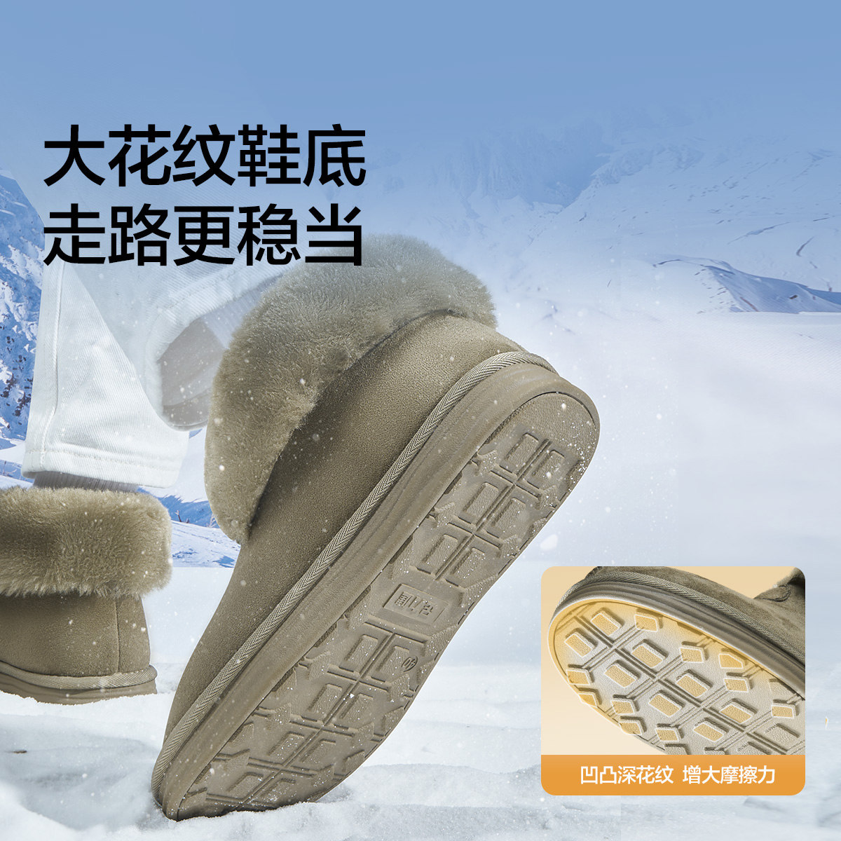 足力健雪地靴女款冬季加绒短筒短靴毛毛靴加厚棉鞋软底防滑保暖鞋