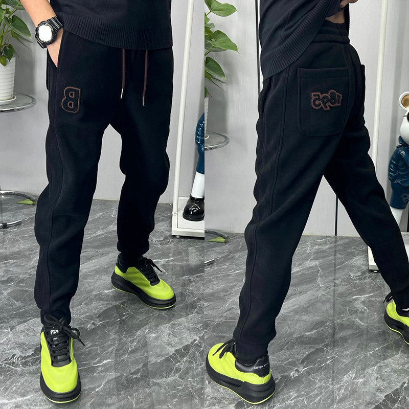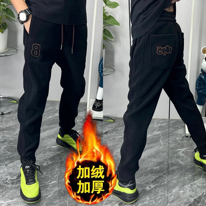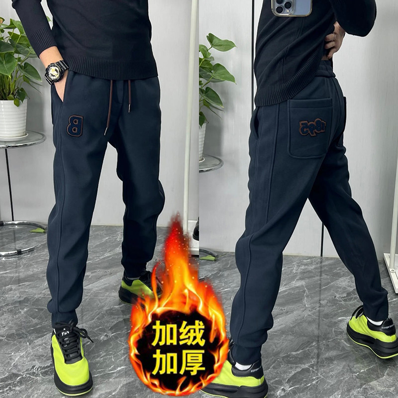 秋冬季加绒修身休闲裤男青少年2023新款百搭束脚卫裤字母哈伦裤子