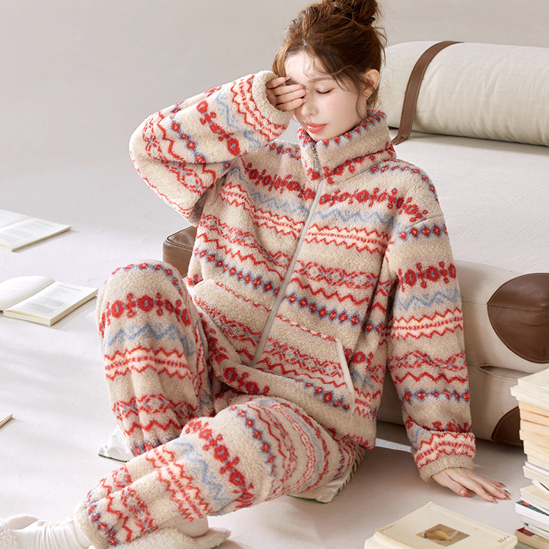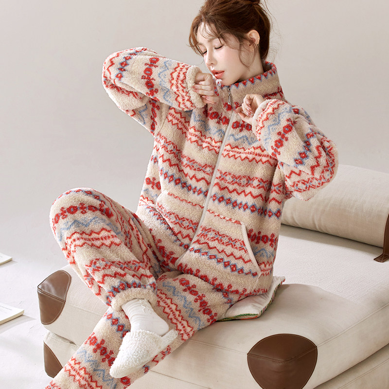睡衣套装加厚加绒可外穿法兰绒家居服秋冬暖绒保暖可爱睡衣女士