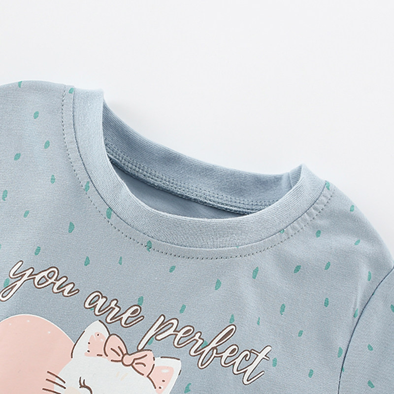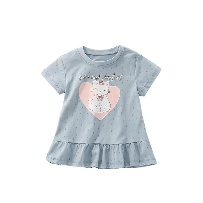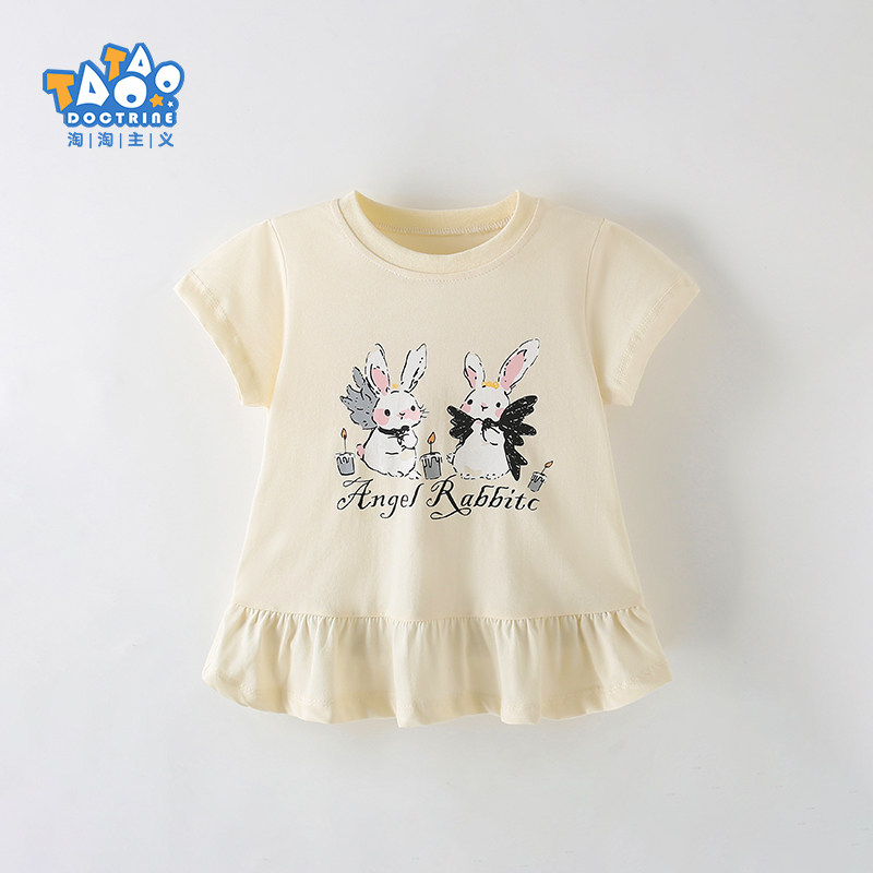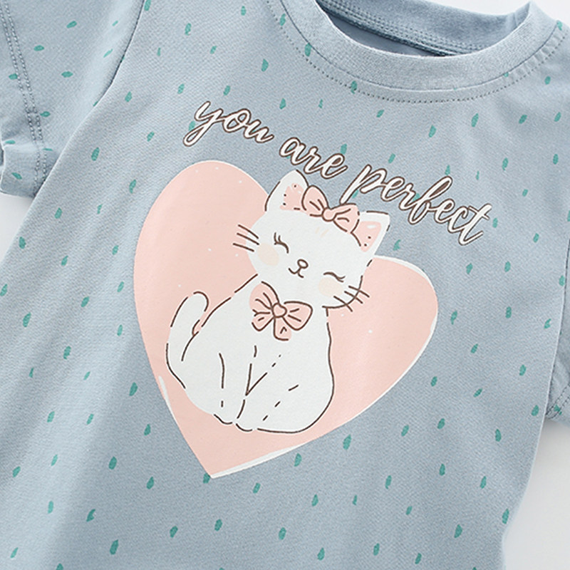 2026夏季新款欧美女童短袖T恤洋气可爱女孩宝宝纯棉儿童圆领上衣