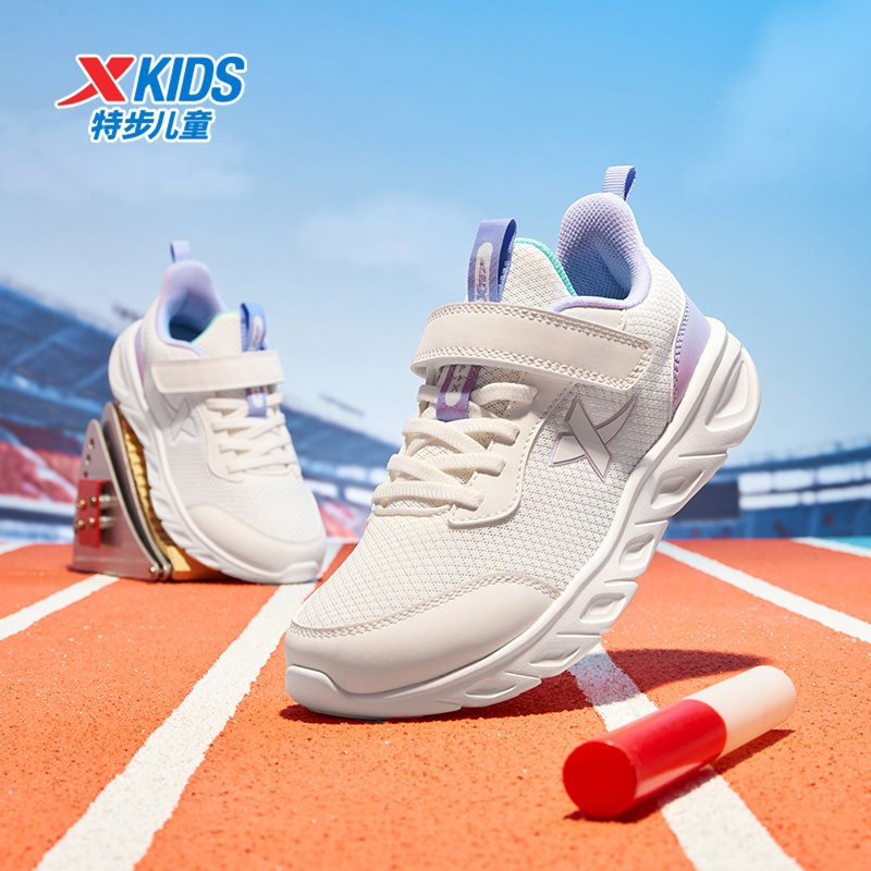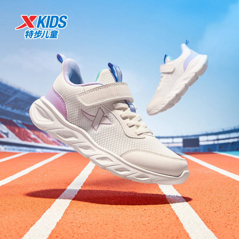 特步童鞋春季新款儿童运动鞋中大童束尾扣鞋子女童轻便宽楦跑步鞋