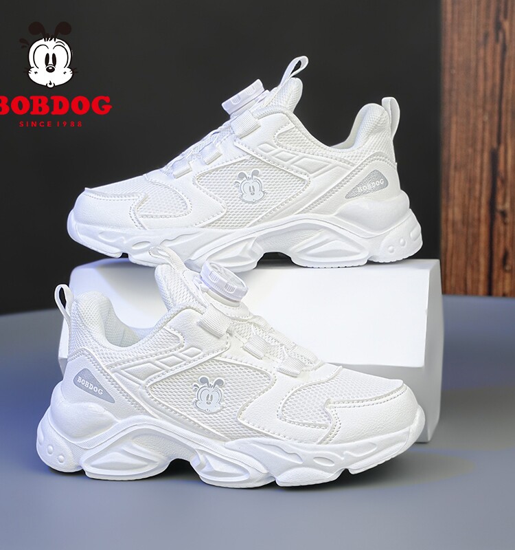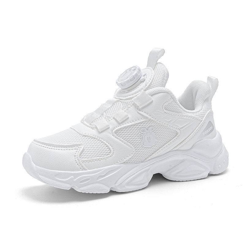 巴布豆童鞋女小白鞋男童儿童2026新款春秋白色运动网面休闲跑步鞋